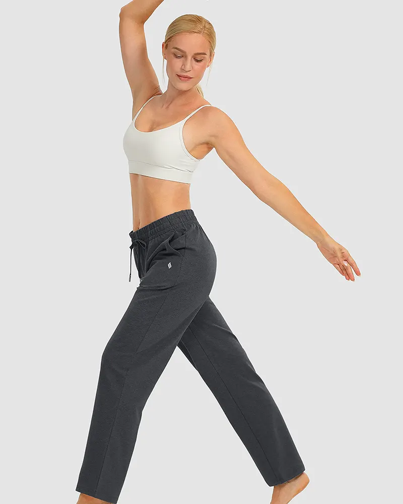 SANTINY Women’s Cotton Sweatpants Yoga Lounge Casual Pants Open Bottom Sweat Pants for Women with Pockets(Haze Blue)