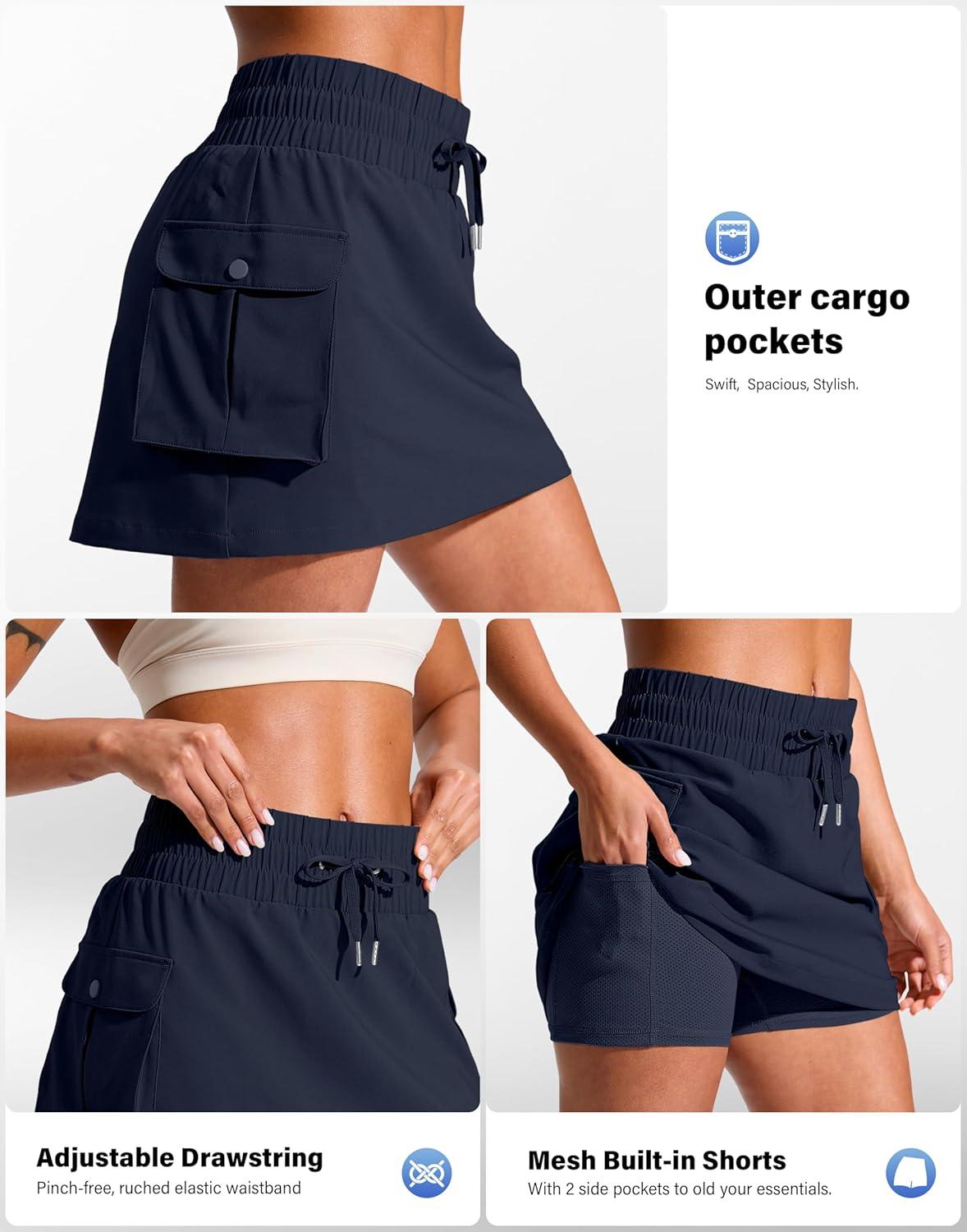 SANTINY 14″ Cargo Skorts for Women with 4 Pockets Drawstring High Waisted Golf Hiking Skirt for Casual Summer Travel(Navy)