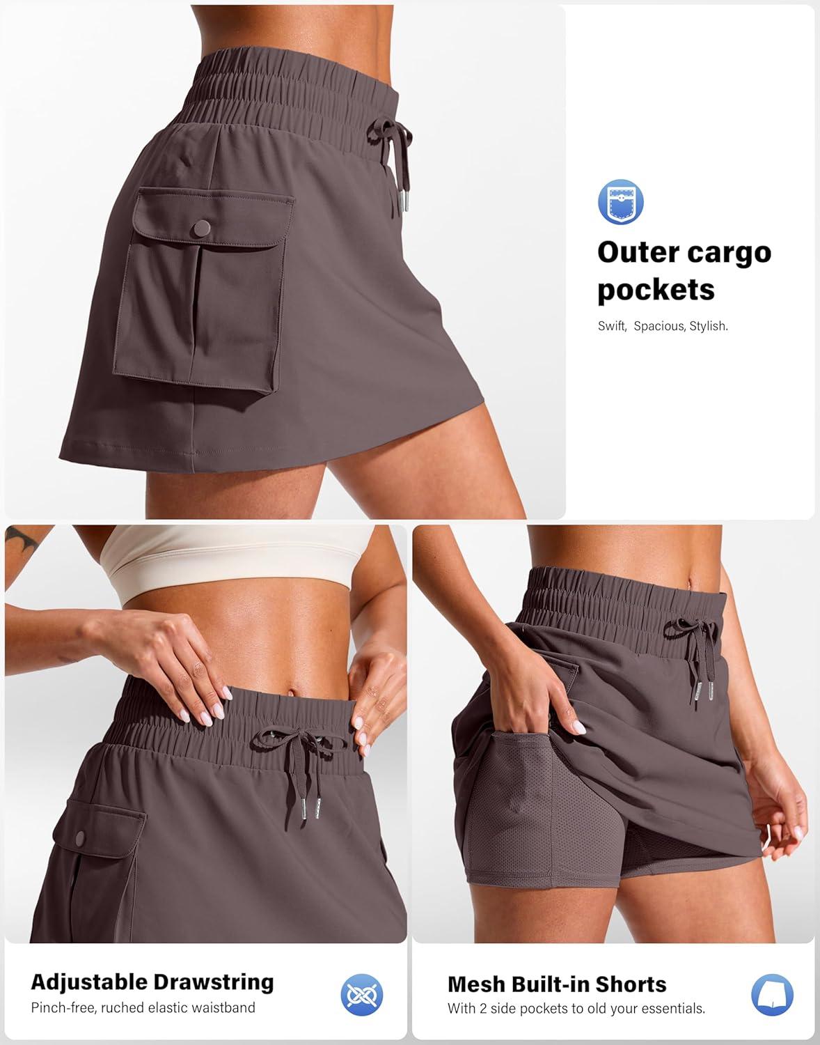SANTINY 14″ Cargo Skorts for Women with 4 Pockets Drawstring High Waisted Golf Hiking Skirt for Casual Summer Travel(Sparrow)