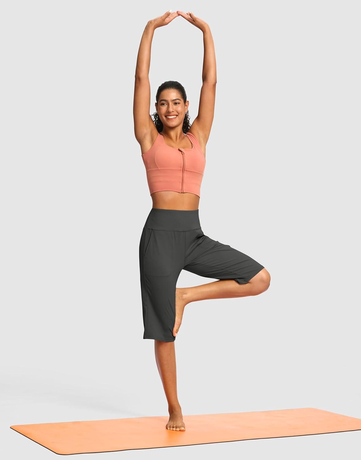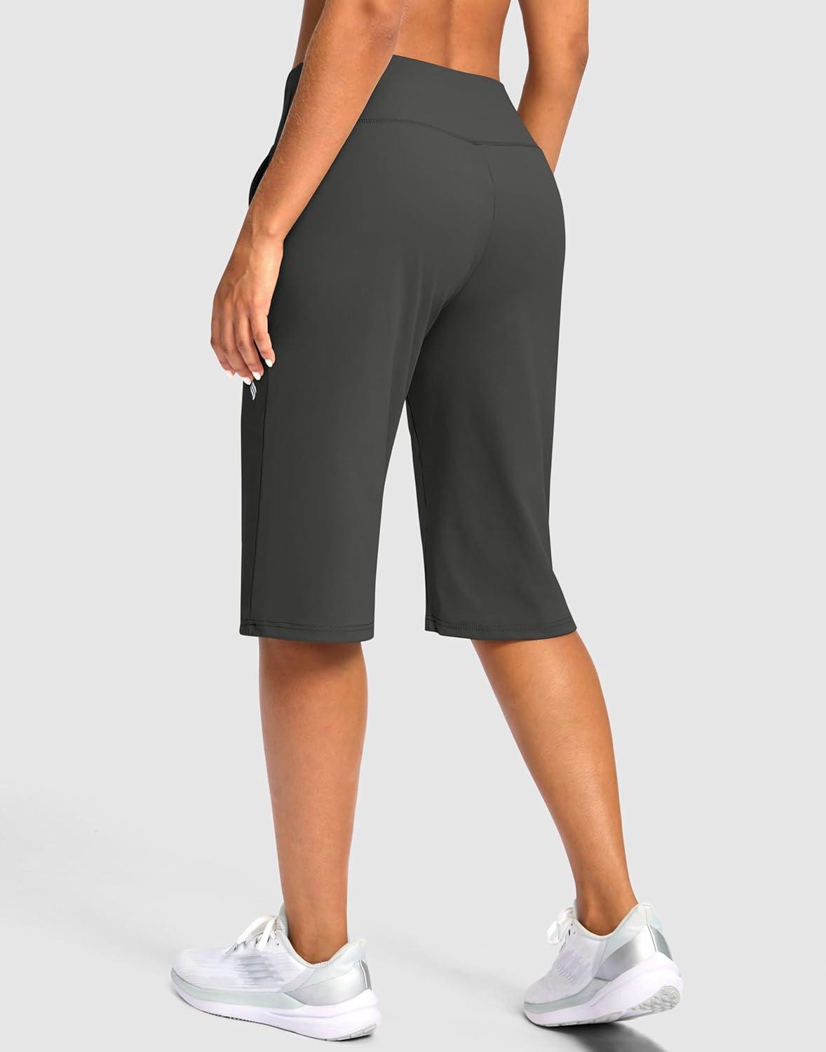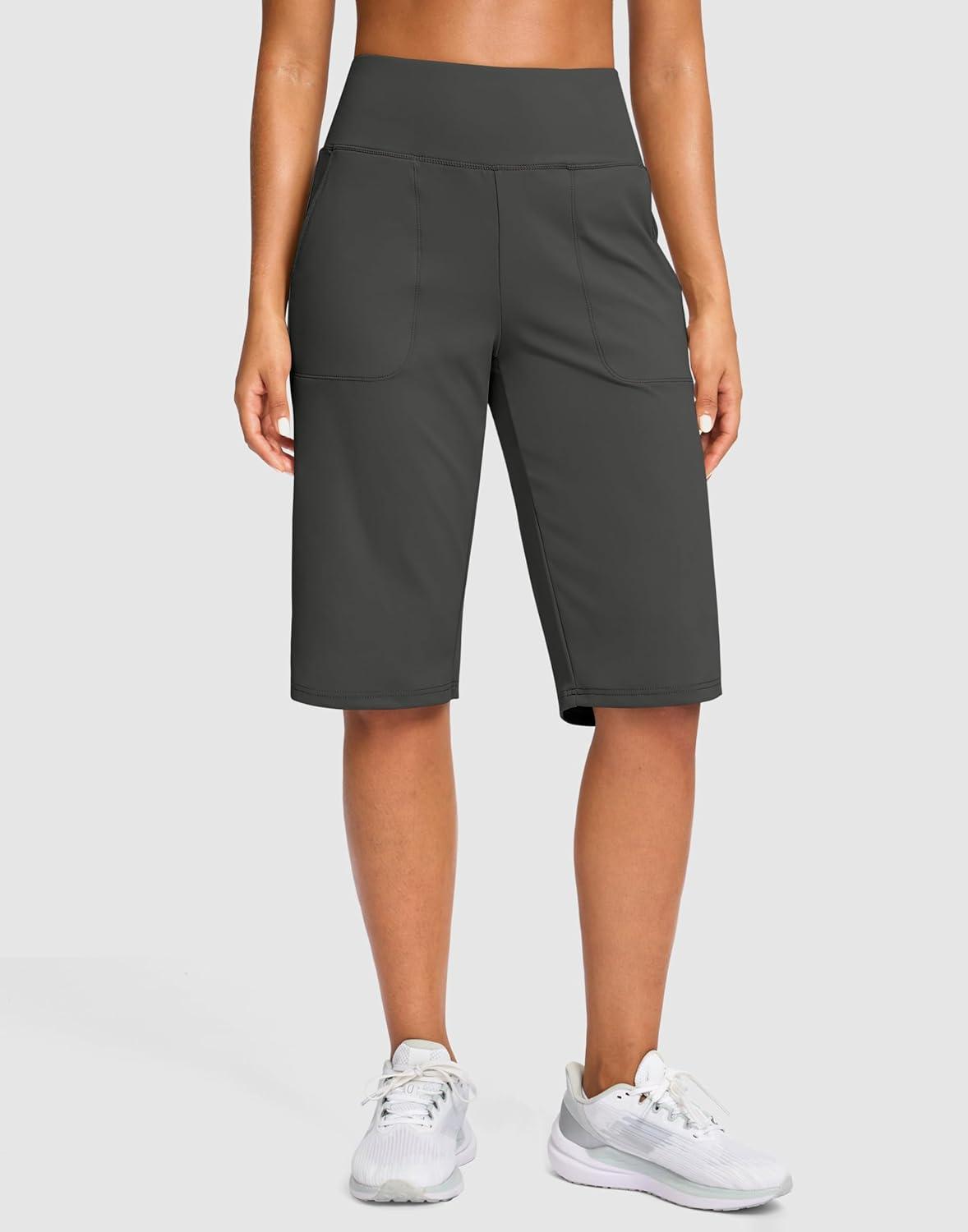 SANTINY 14″ Shorts for Women Knee Length with Pockets High Waisted Stretch Long Bermuda Shorts for Summer Dressy Casual(Dark Grey)