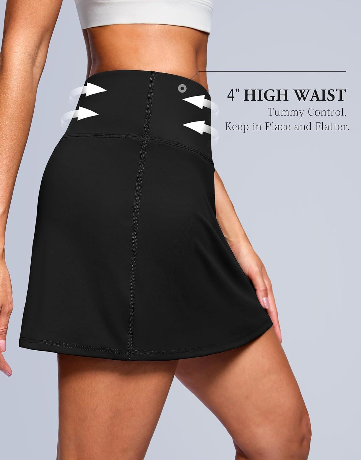 SANTINY 14″ Skorts for Women with 2 Pockets High Waisted A Line Casual Pickleball Golf Skort Athletic Tennis Skirt(Black)