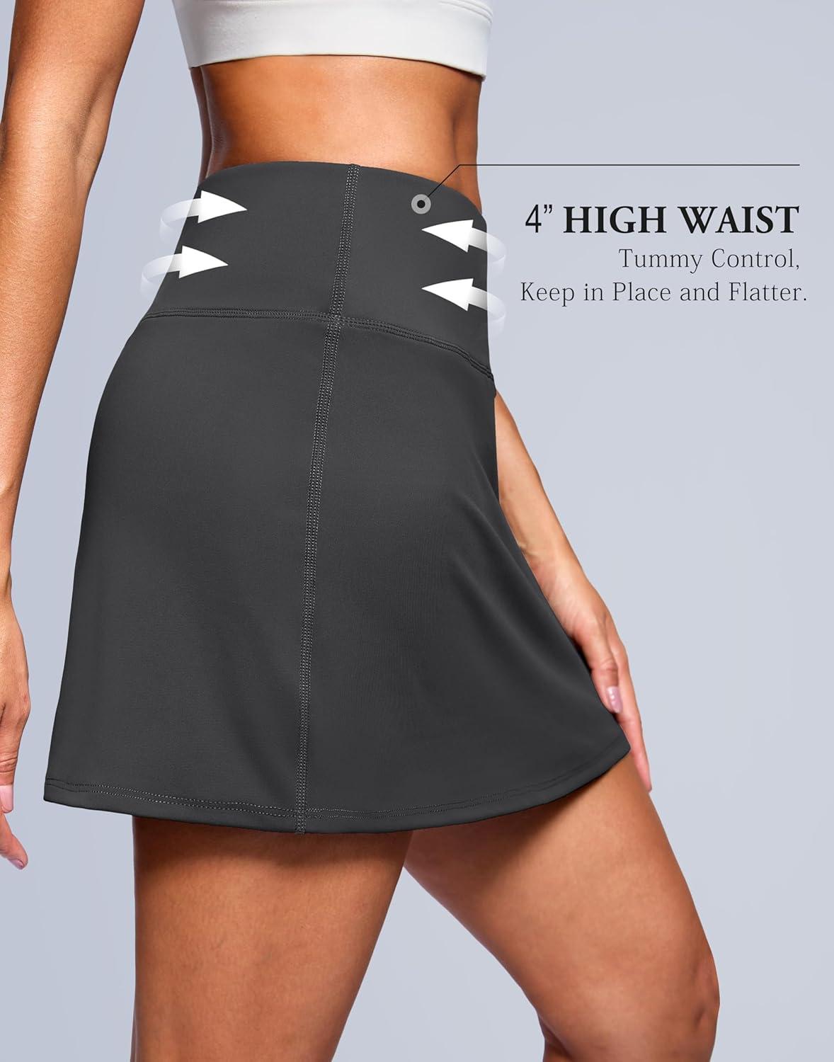 SANTINY 14″ Skorts for Women with 2 Pockets High Waisted A Line Casual Pickleball Golf Skort Athletic Tennis Skirt(Dark Grey)