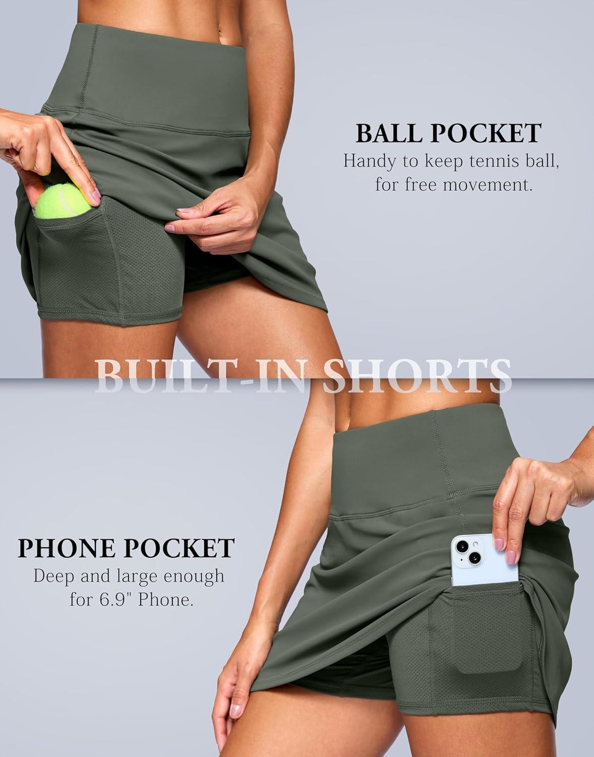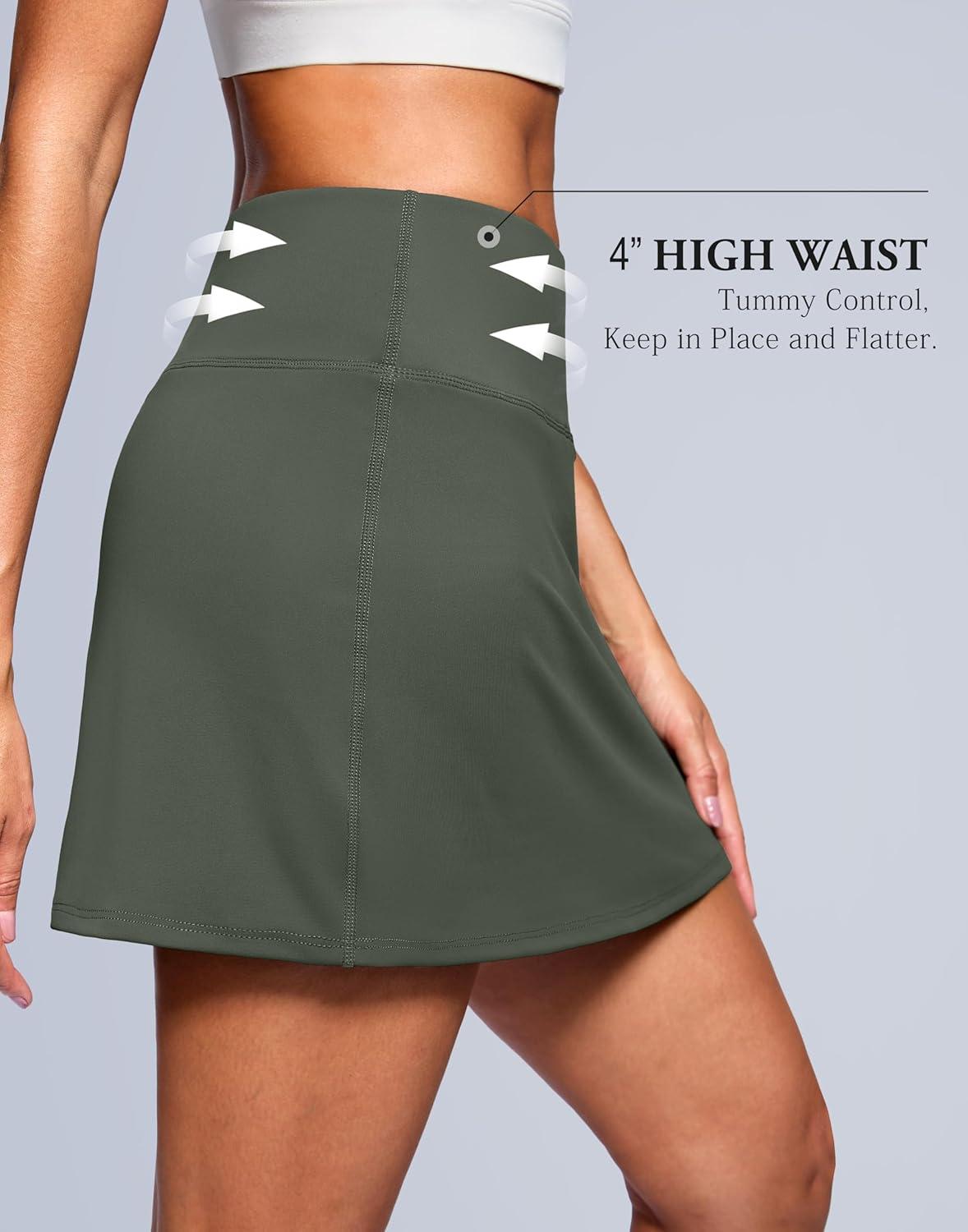 SANTINY 14″ Skorts for Women with 2 Pockets High Waisted A Line Casual Pickleball Golf Skort Athletic Tennis Skirt(Grey Sage)