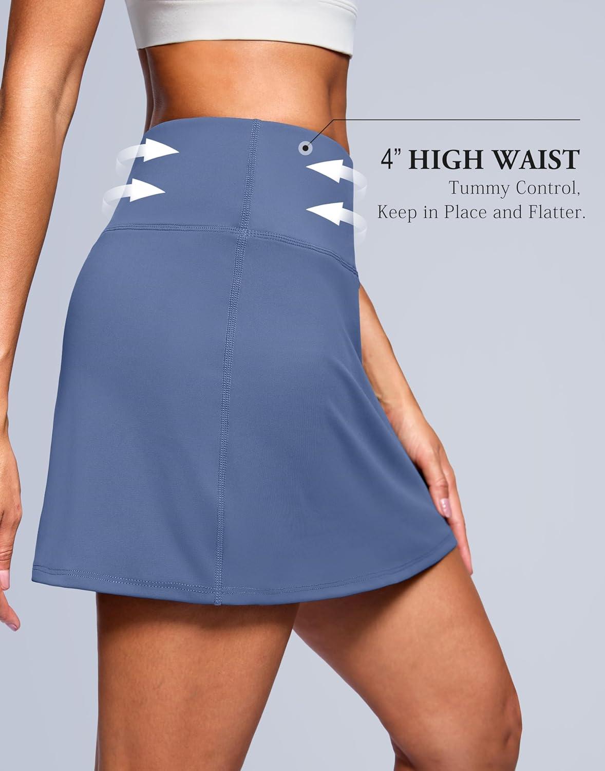 SANTINY 14″ Skorts for Women with 2 Pockets High Waisted A Line Casual Pickleball Golf Skort Athletic Tennis Skirt(Palace Blue)