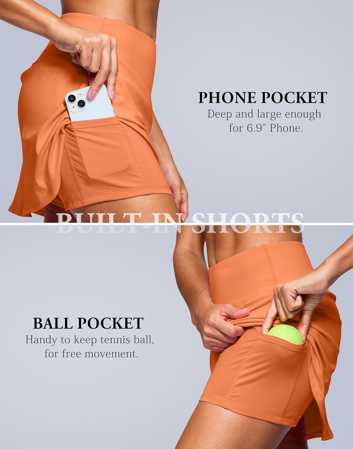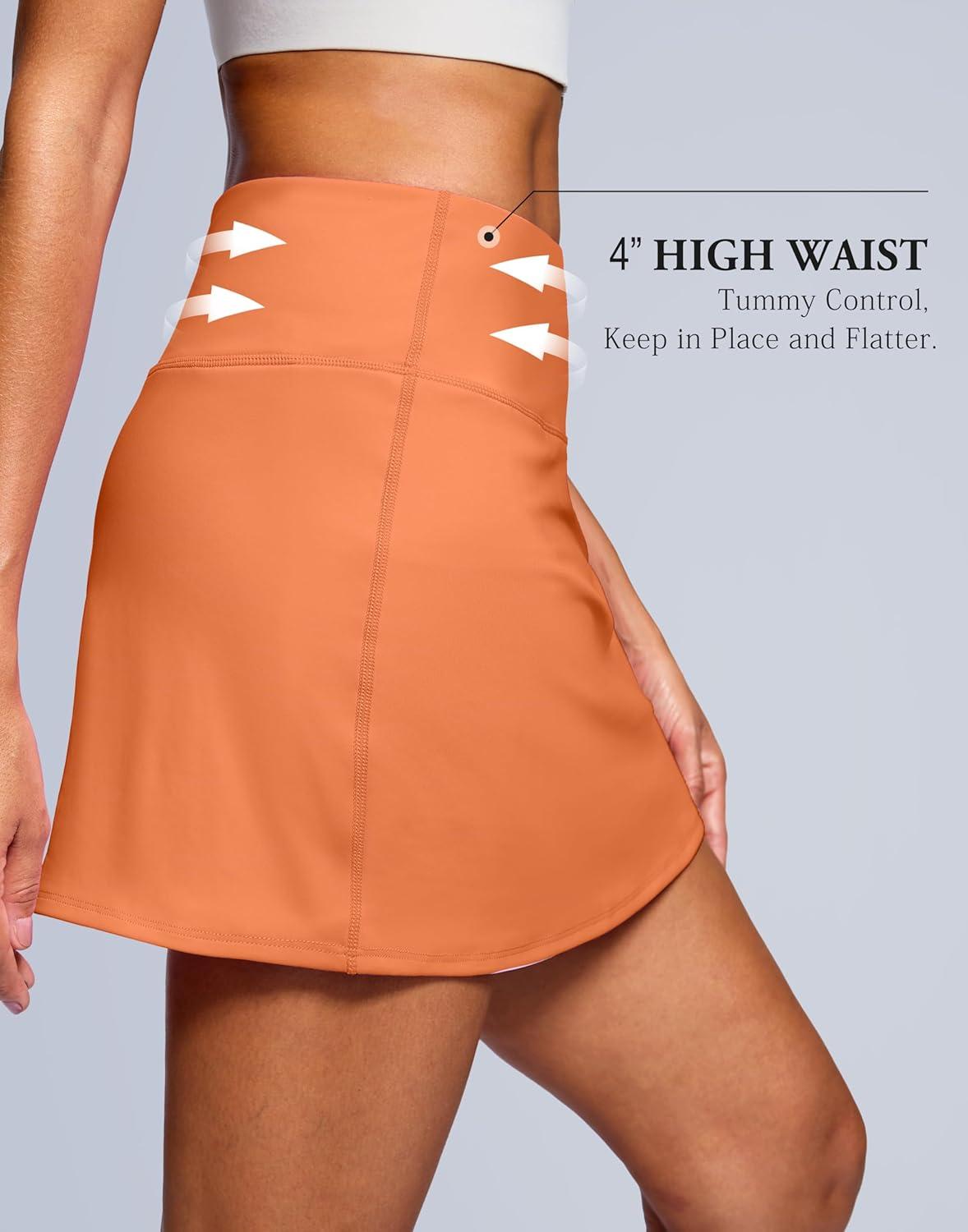 SANTINY 14″ Skorts for Women with 2 Pockets High Waisted A Line Casual Pickleball Golf Skort Athletic Tennis Skirt(Pumpkin Orange)