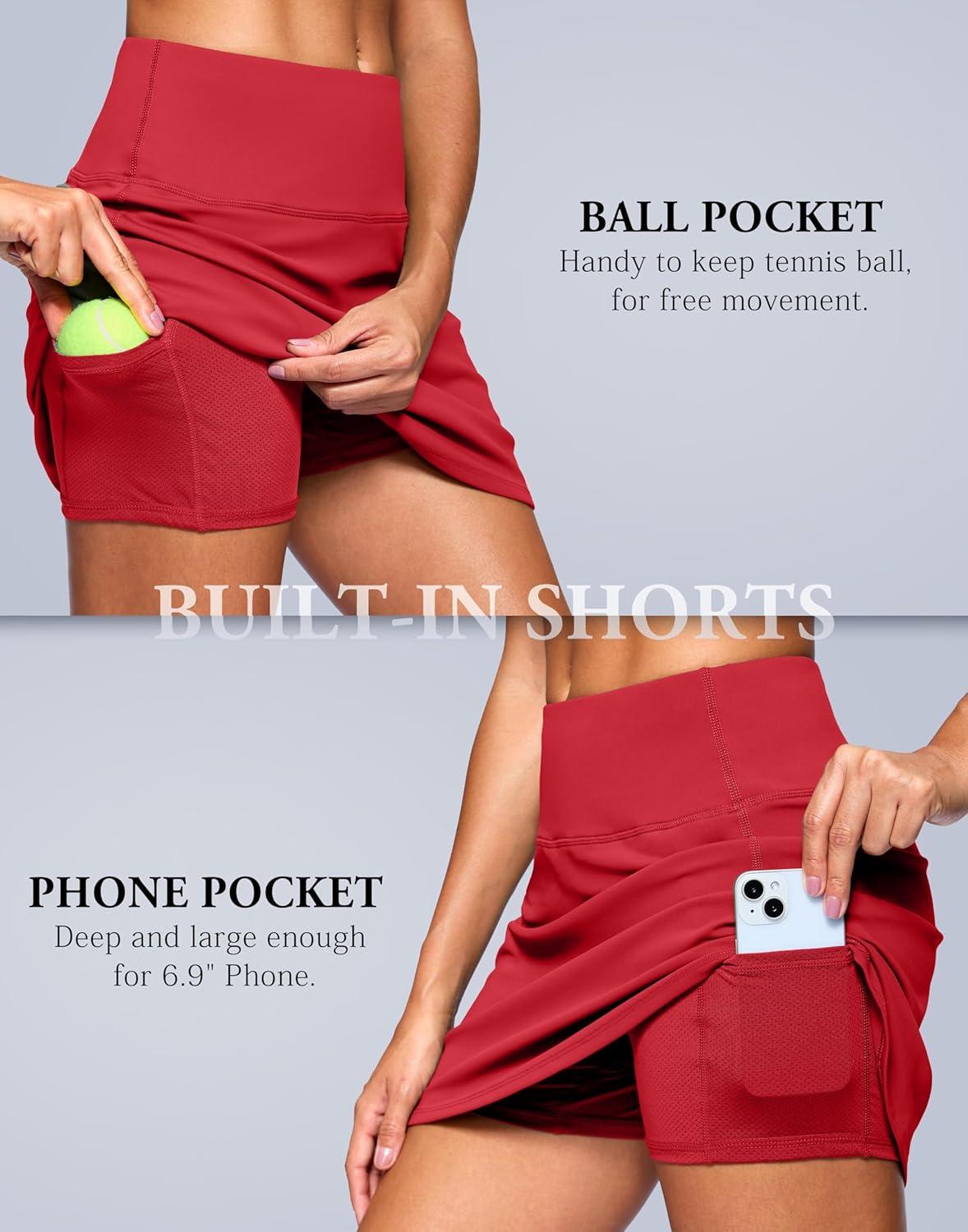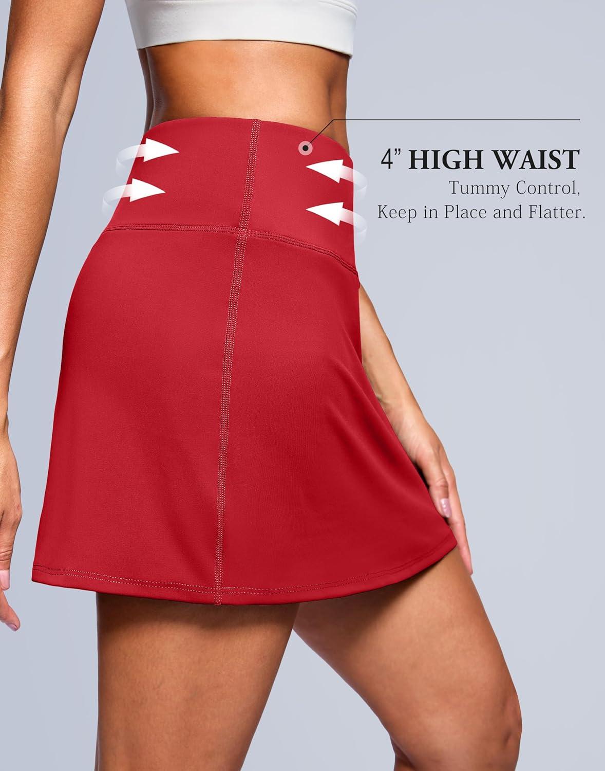 SANTINY 14″ Skorts for Women with 2 Pockets High Waisted A Line Casual Pickleball Golf Skort Athletic Tennis Skirt(Red)