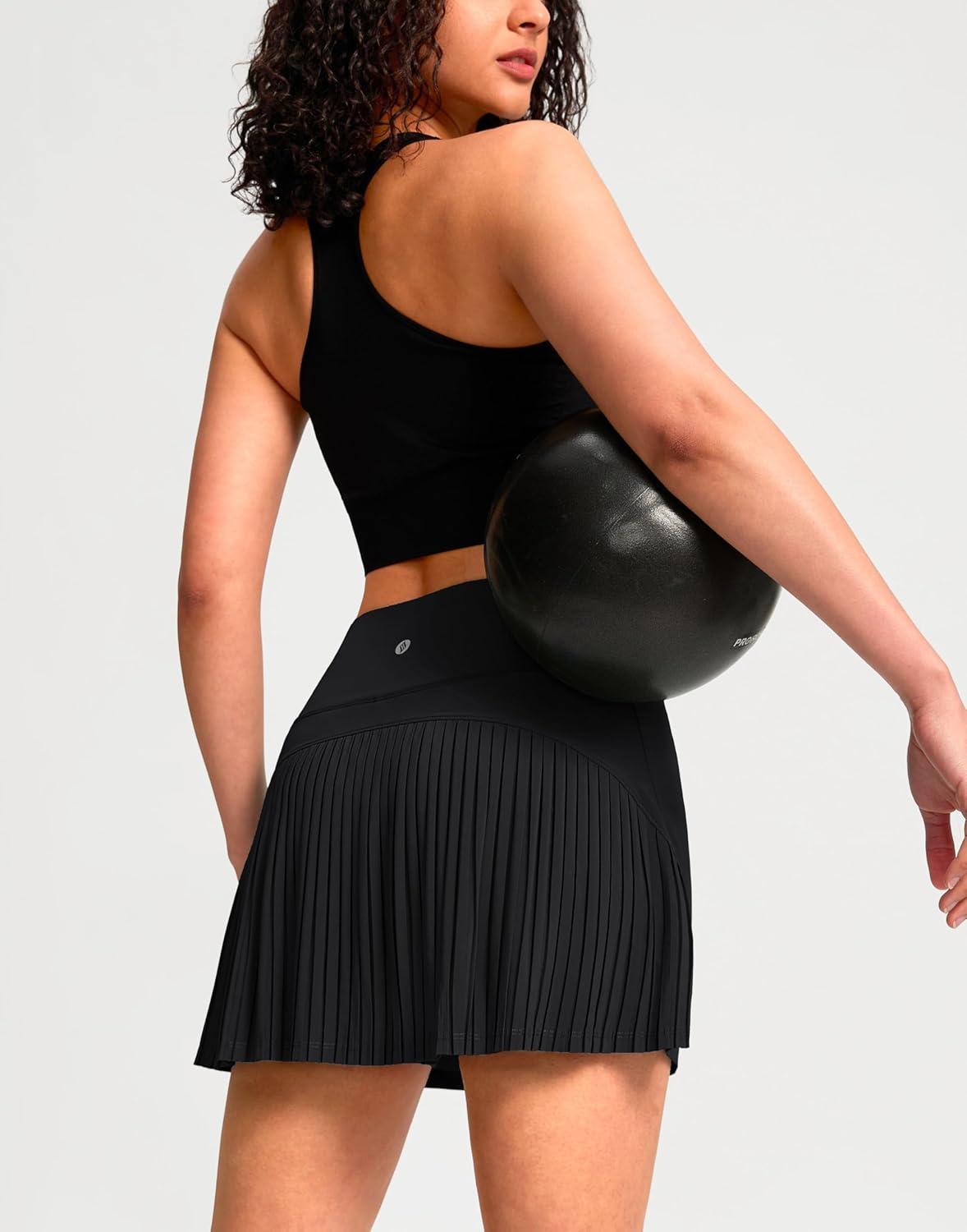 SANTINY 14″ Tennis Skirt Skorts for Woman Pleated High Waited Skirts with Built-in Shorts Athletic Golf Skort(Black)