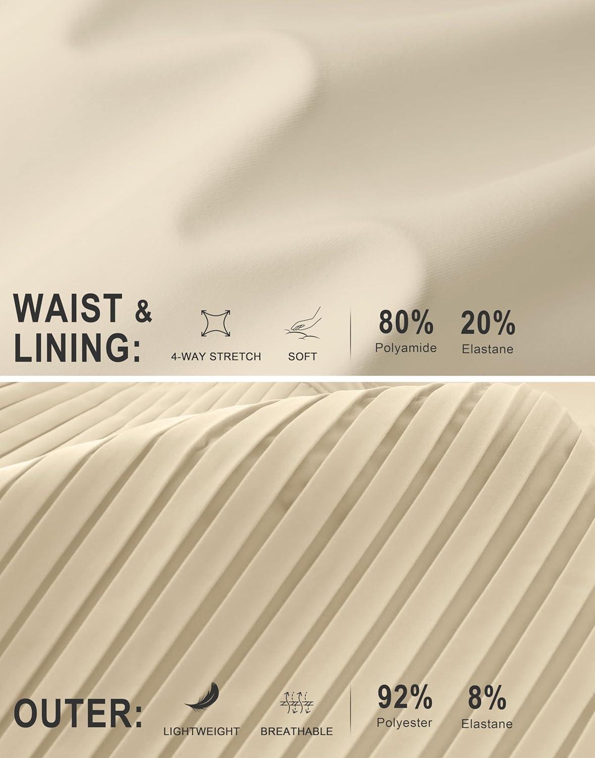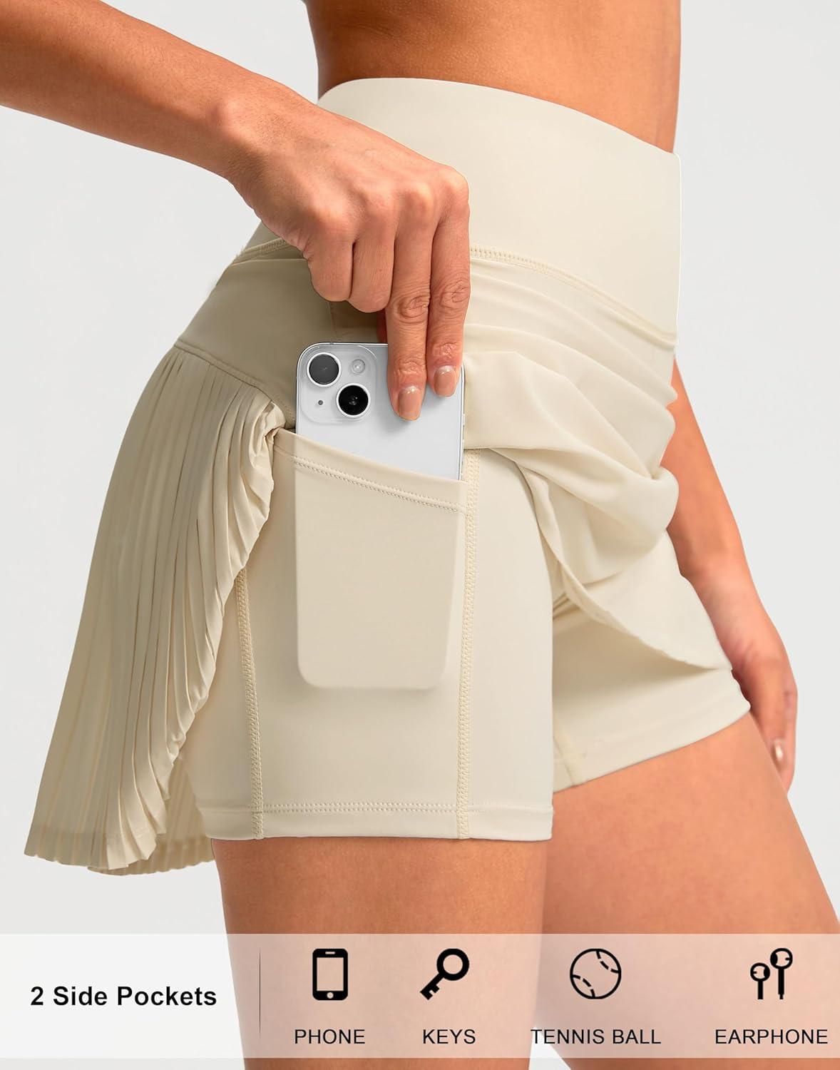 SANTINY 14″ Tennis Skirt Skorts for Woman Pleated High Waited Skirts with Built-in Shorts Athletic Golf Skort(C Beige)