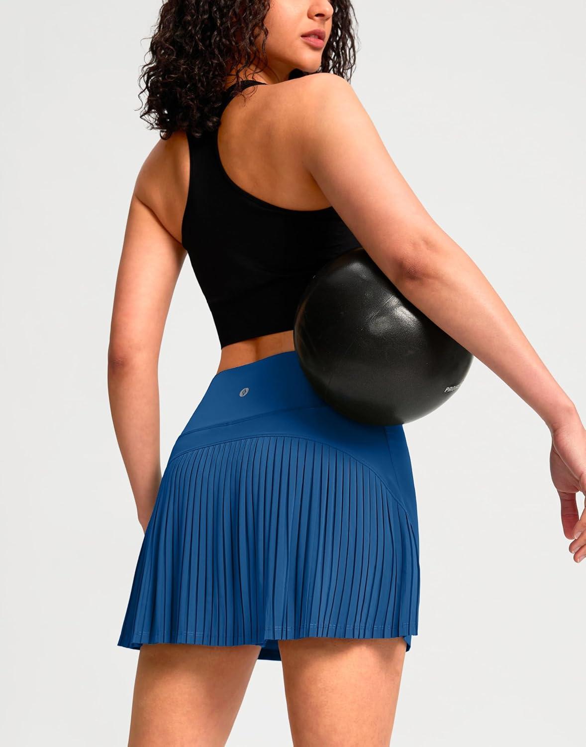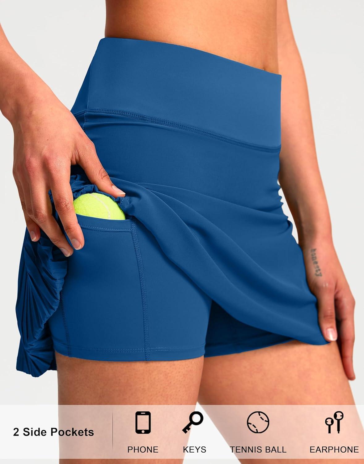 SANTINY 14″ Tennis Skirt Skorts for Woman Pleated High Waited Skirts with Built-in Shorts Athletic Golf Skort(Deep Blue)