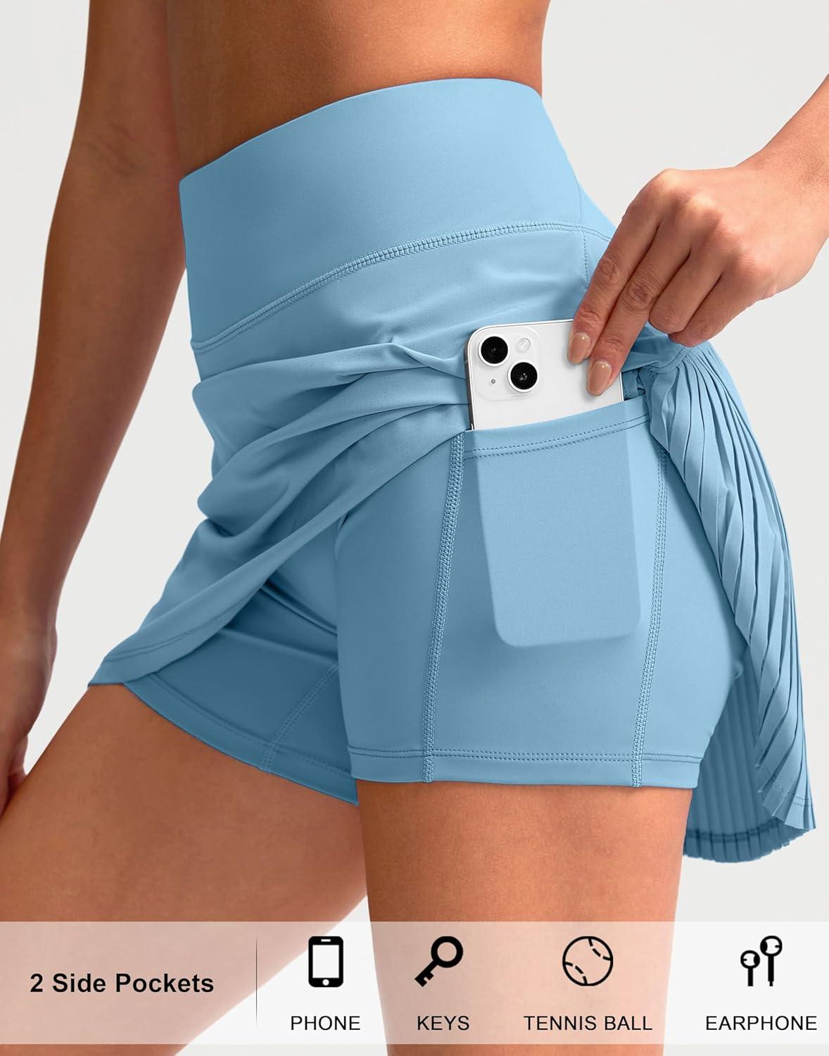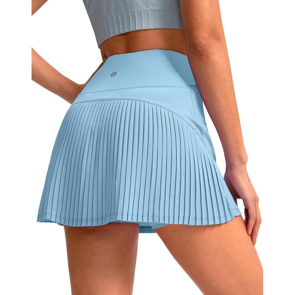 SANTINY 14″ Tennis Skirt Skorts for Woman Pleated High Waited Skirts with Built-in Shorts Athletic Golf Skort(Light Blue)