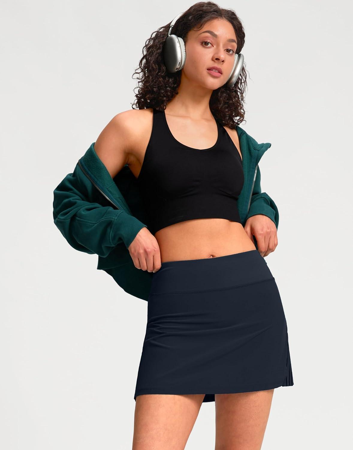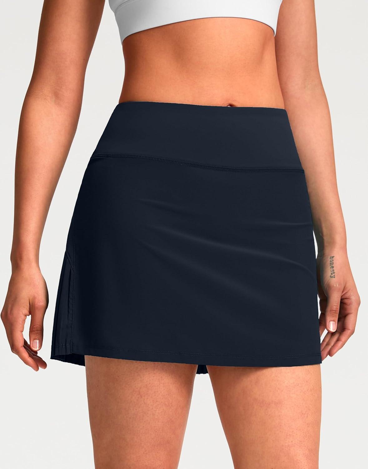 SANTINY 14″ Tennis Skirt Skorts for Woman Pleated High Waited Skirts with Built-in Shorts Athletic Golf Skort(Navy)