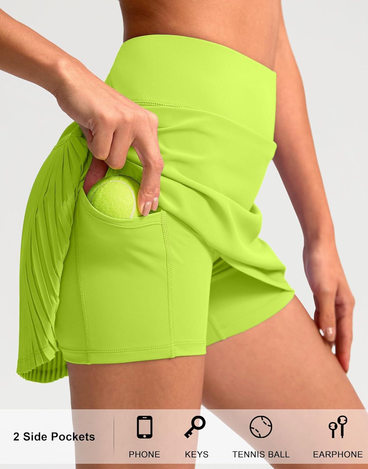 SANTINY 14″ Tennis Skirt Skorts for Woman Pleated High Waited Skirts with Built-in Shorts Athletic Golf Skort(Neon Yellow)