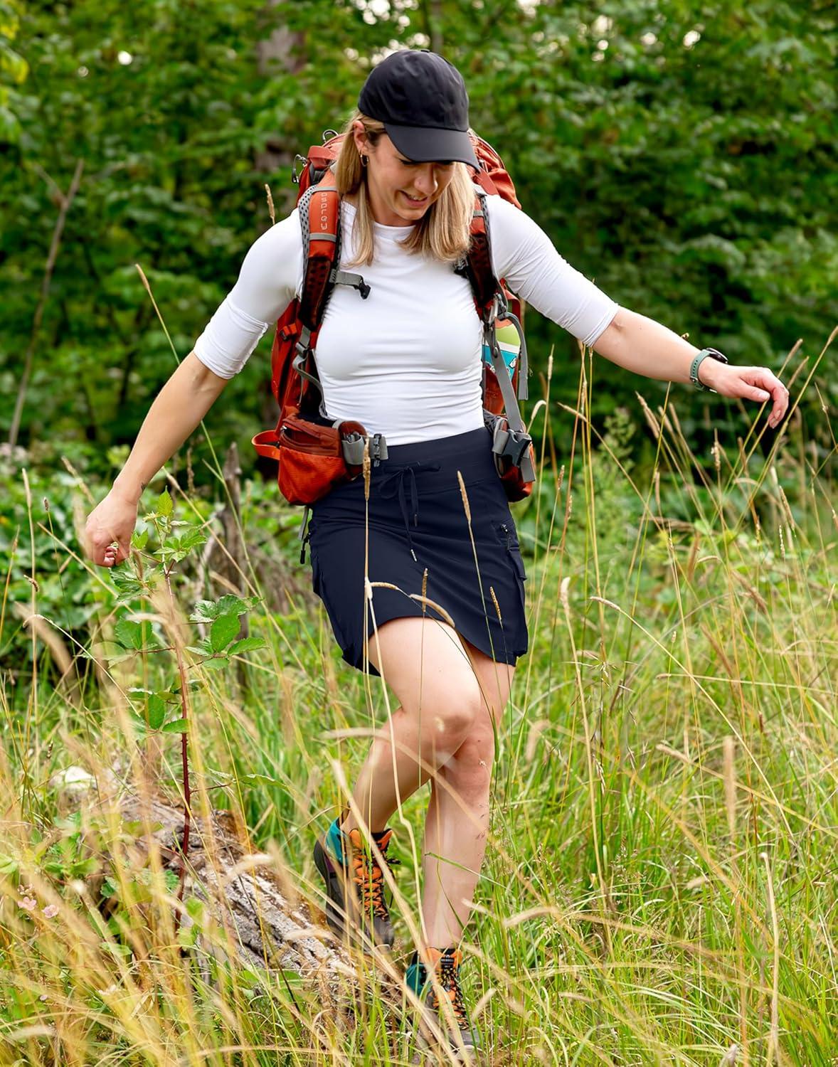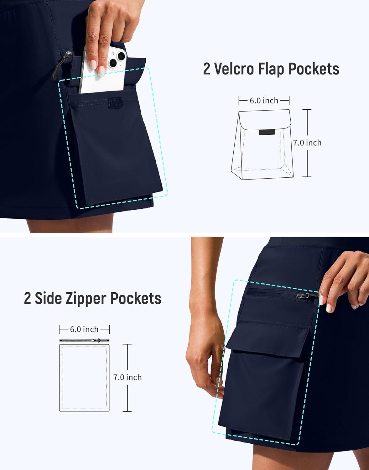 SANTINY 16″ Cargo Skort with 6 Pockets Drawstring High Waisted Golf Travel Hiking Skorts for Women Dressy Casual Summer(Navy)
