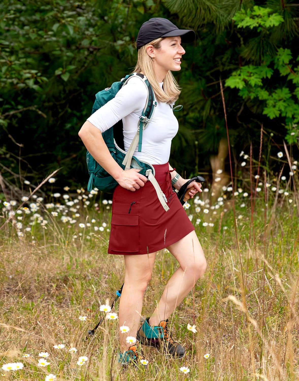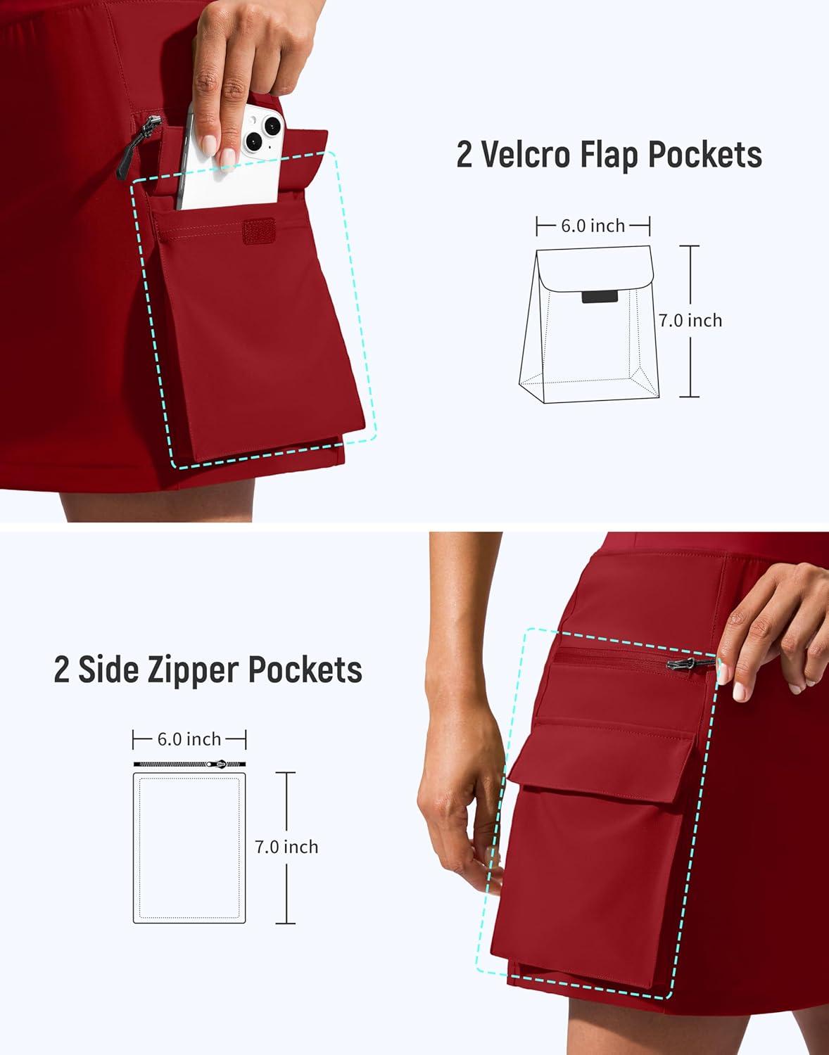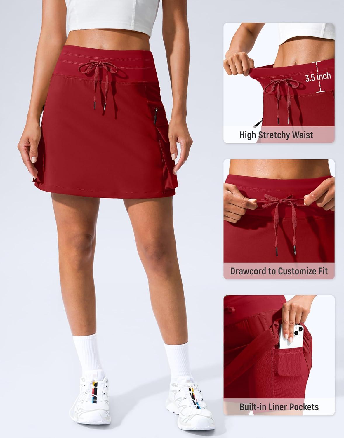 SANTINY 16″ Cargo Skort with 6 Pockets Drawstring High Waisted Golf Travel Hiking Skorts for Women Dressy Casual Summer(Red)