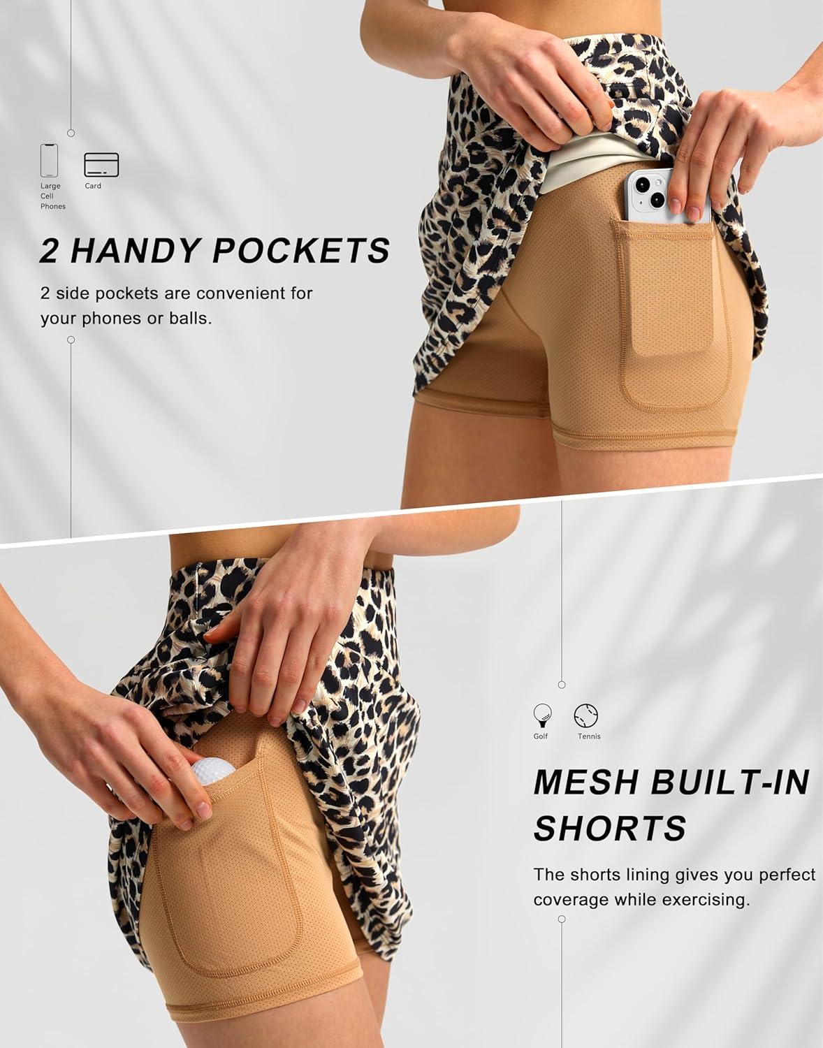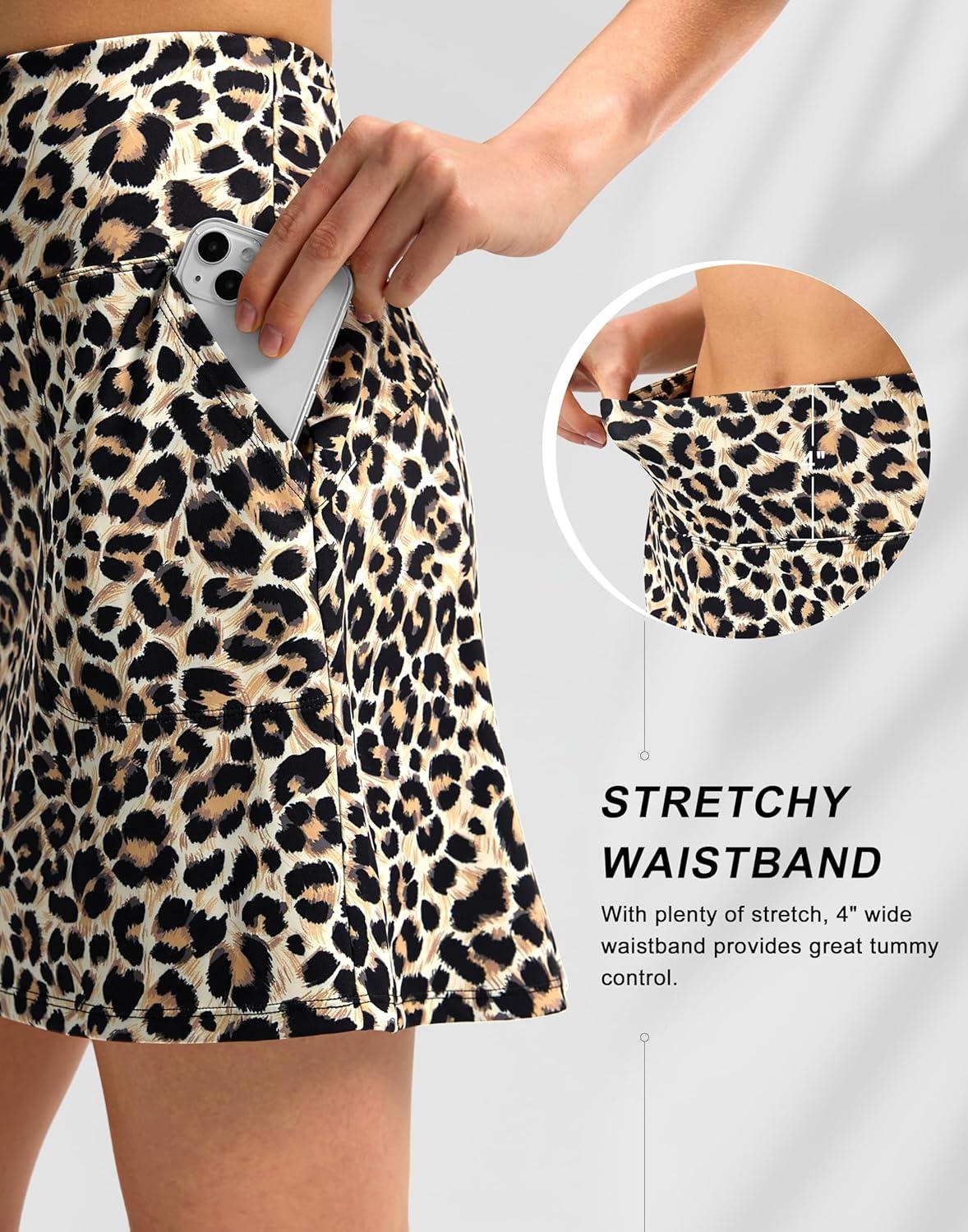 SANTINY 16″ Golf Skorts Skirts for Women with 4 Pockets Women’s High Waisted Stretchy Tennis Skirt Athletic Skort(Leopard)