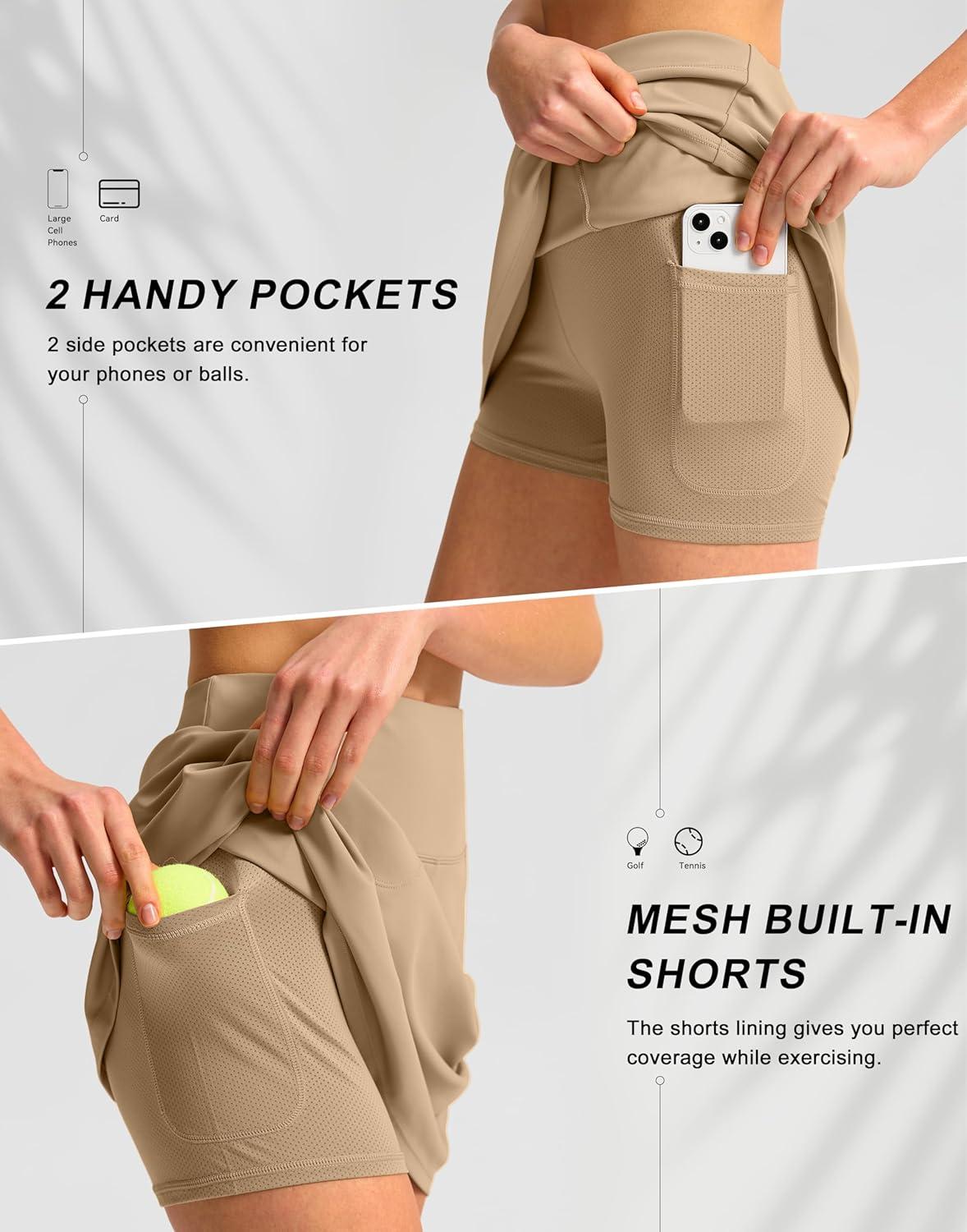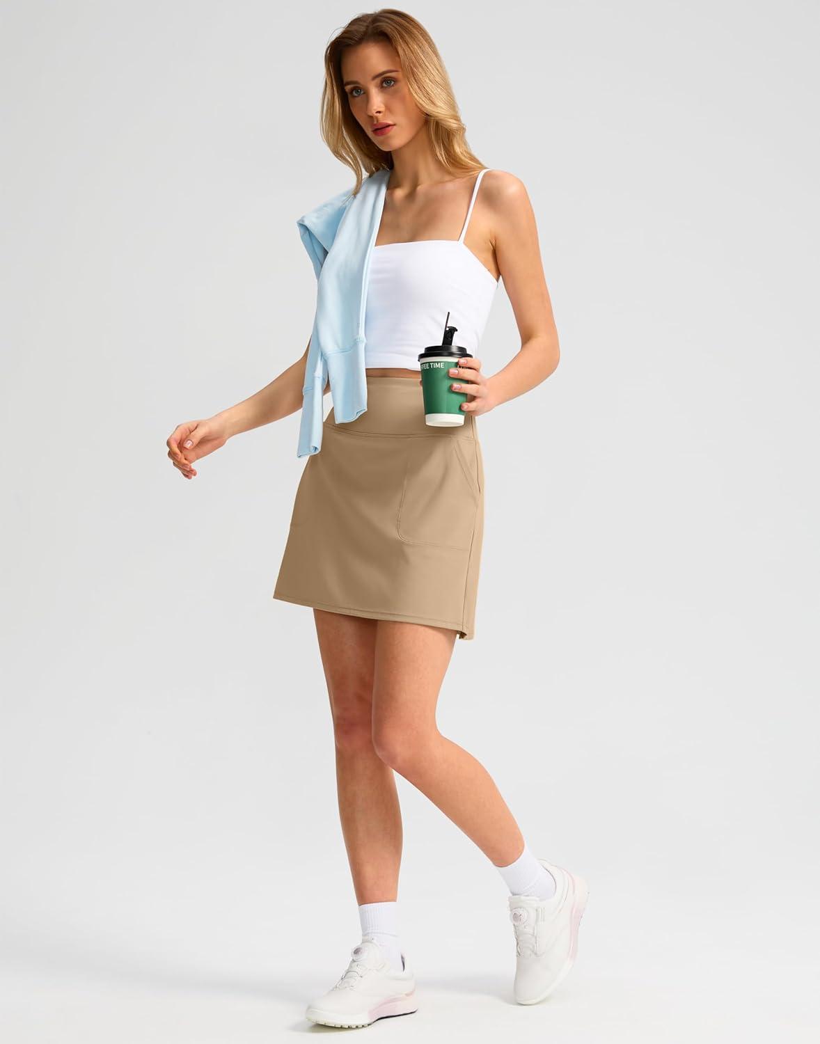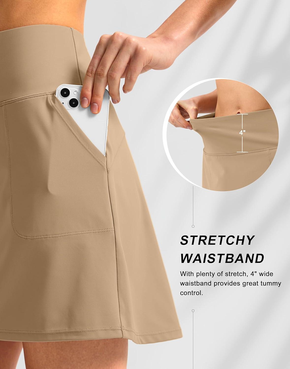 SANTINY 16″ Golf Skorts Skirts for Women with 4 Pockets Women’s High Waisted Stretchy Tennis Skirt Athletic Skort(Light Khaki)