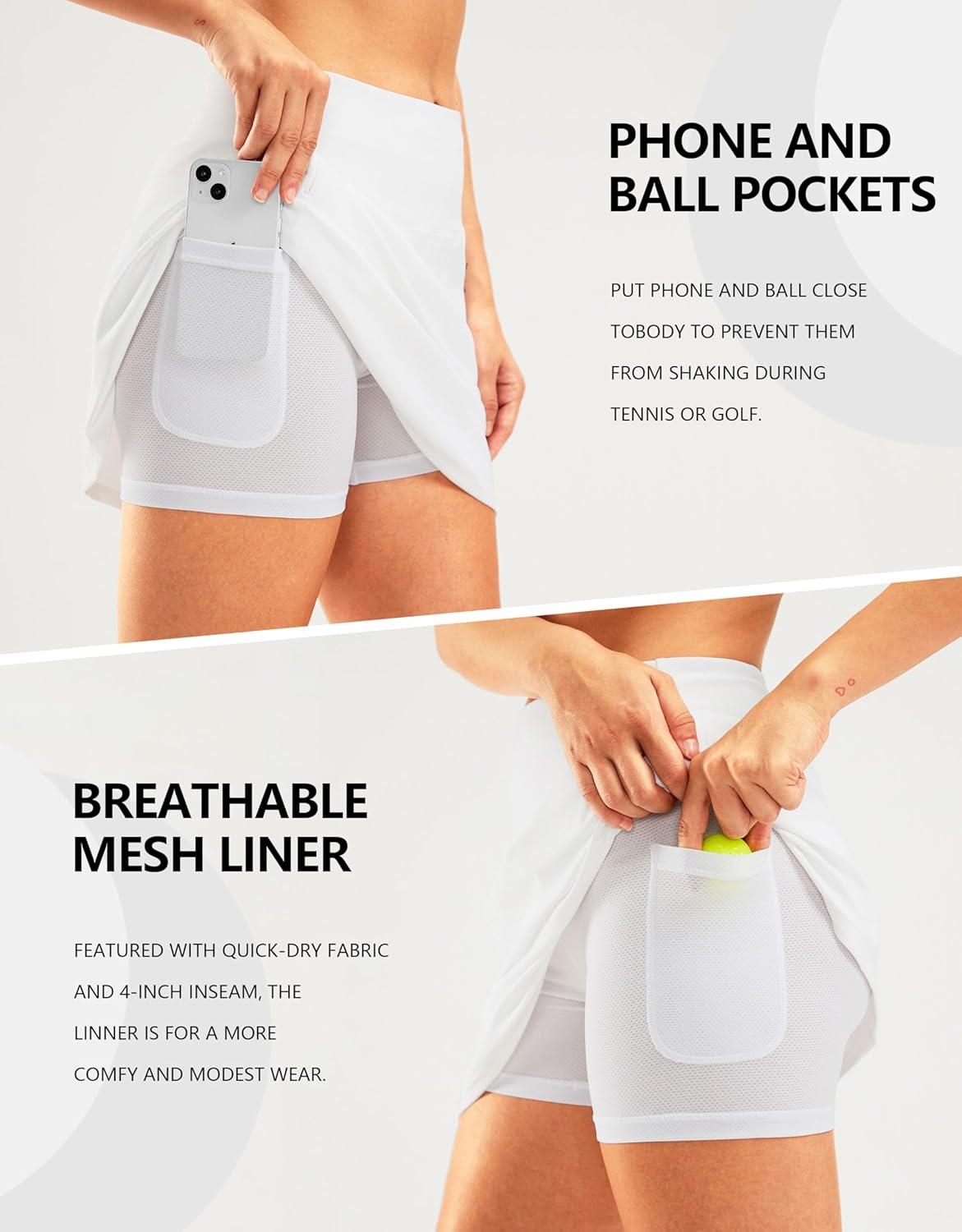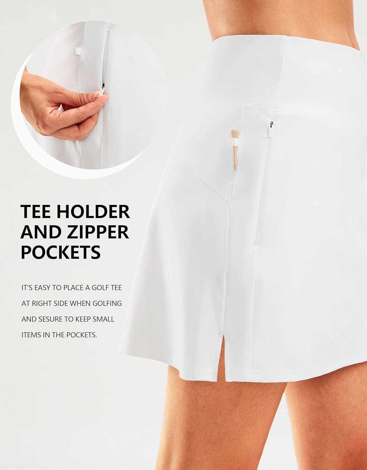 SANTINY 16″ Golf Skorts Skirts for Women Zipper Pockets Women’s High Waisted Tennis Skirt Athletic Skort(A White)