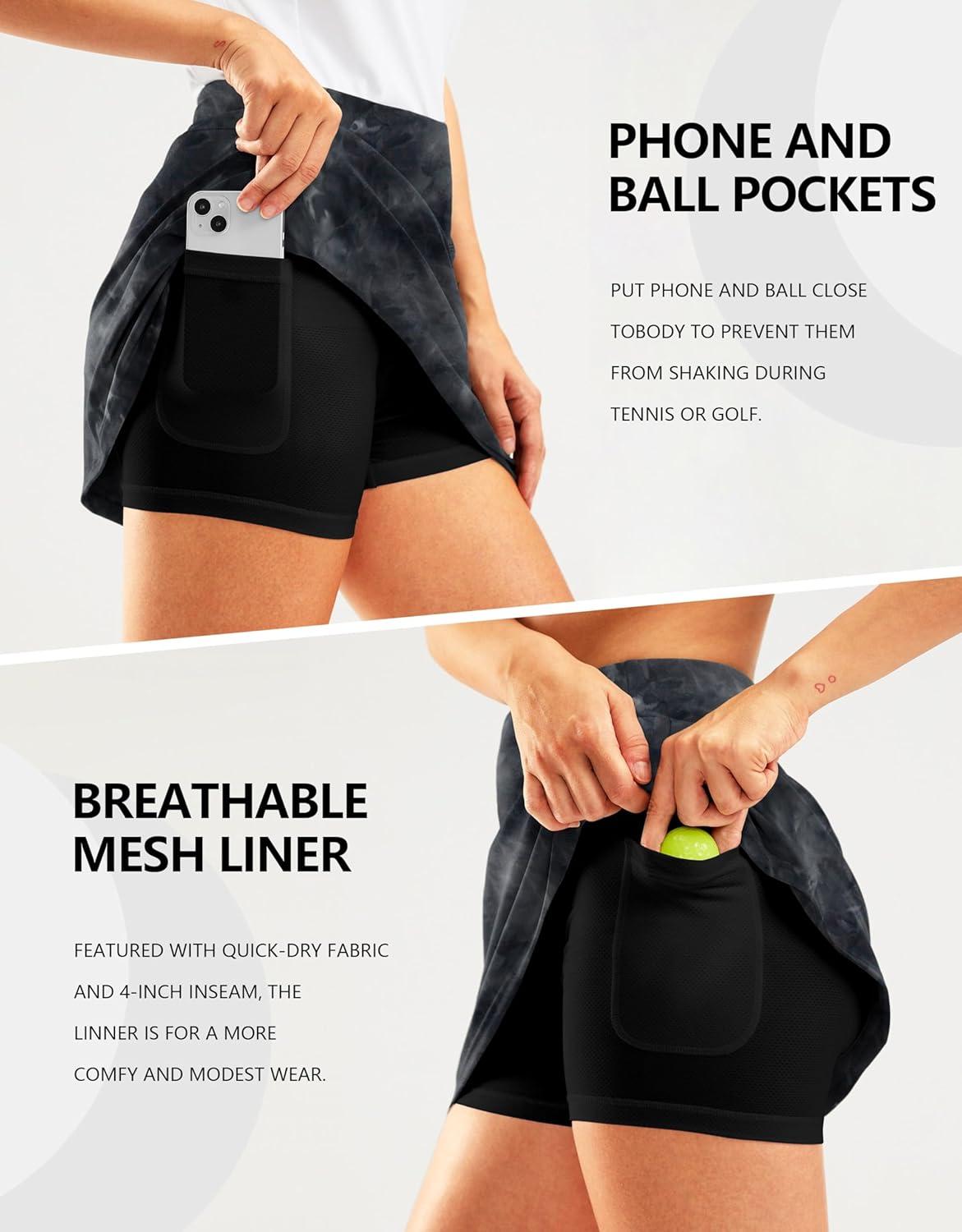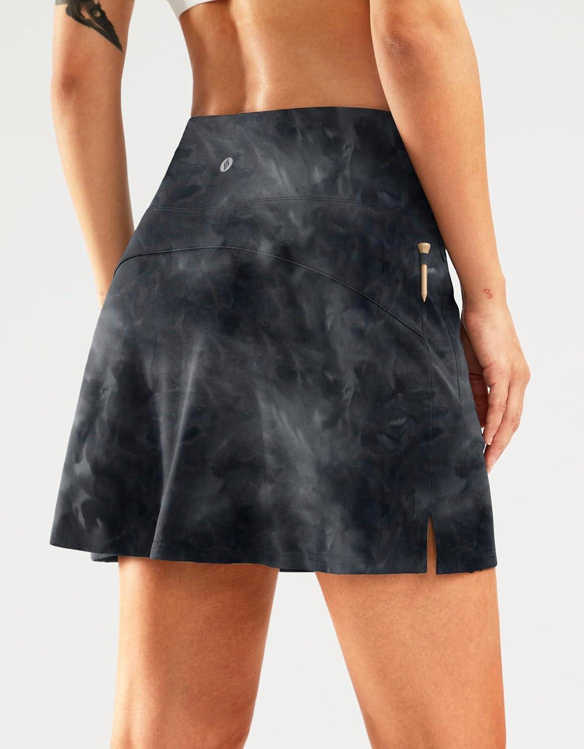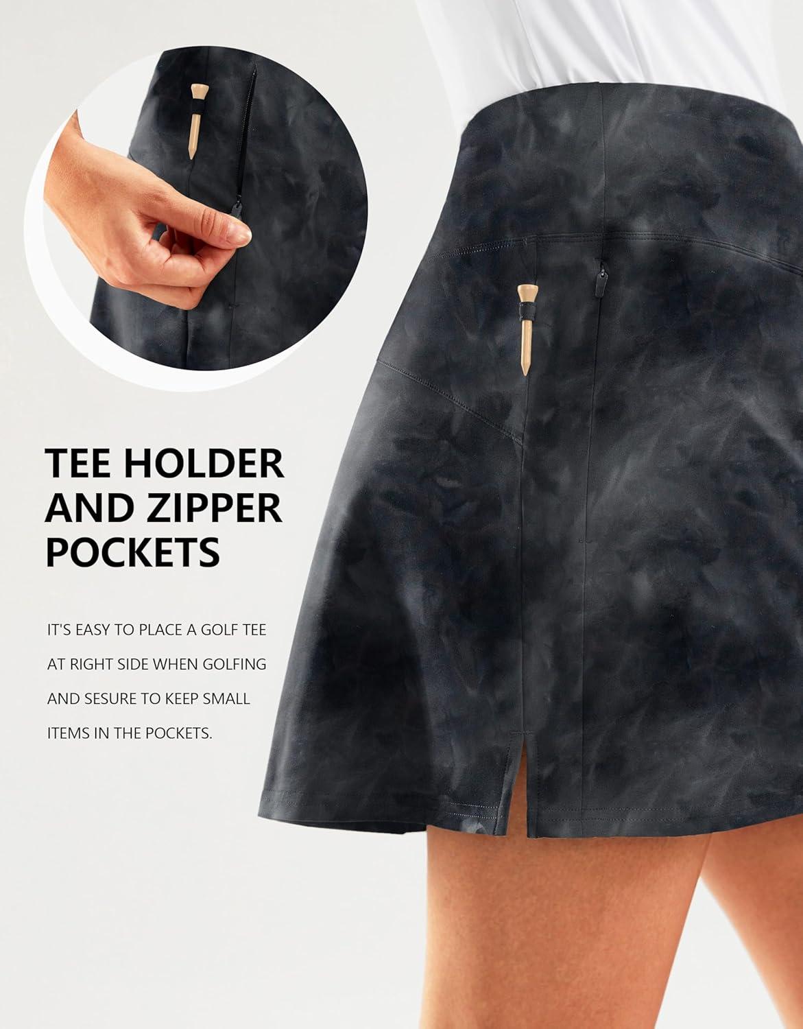 SANTINY 16″ Golf Skorts Skirts for Women Zipper Pockets Women’s High Waisted Tennis Skirt Athletic Skort(Black Tie-dye)