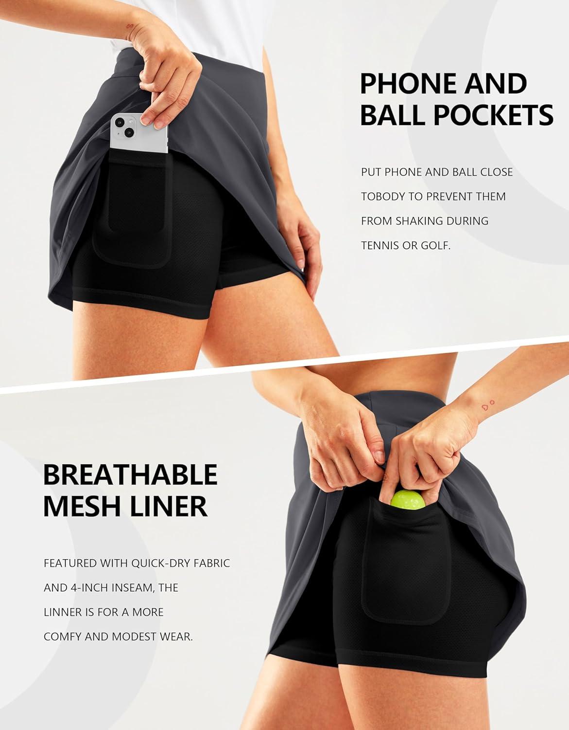 SANTINY 16″ Golf Skorts Skirts for Women Zipper Pockets Women’s High Waisted Tennis Skirt Athletic Skort(Dark Grey)