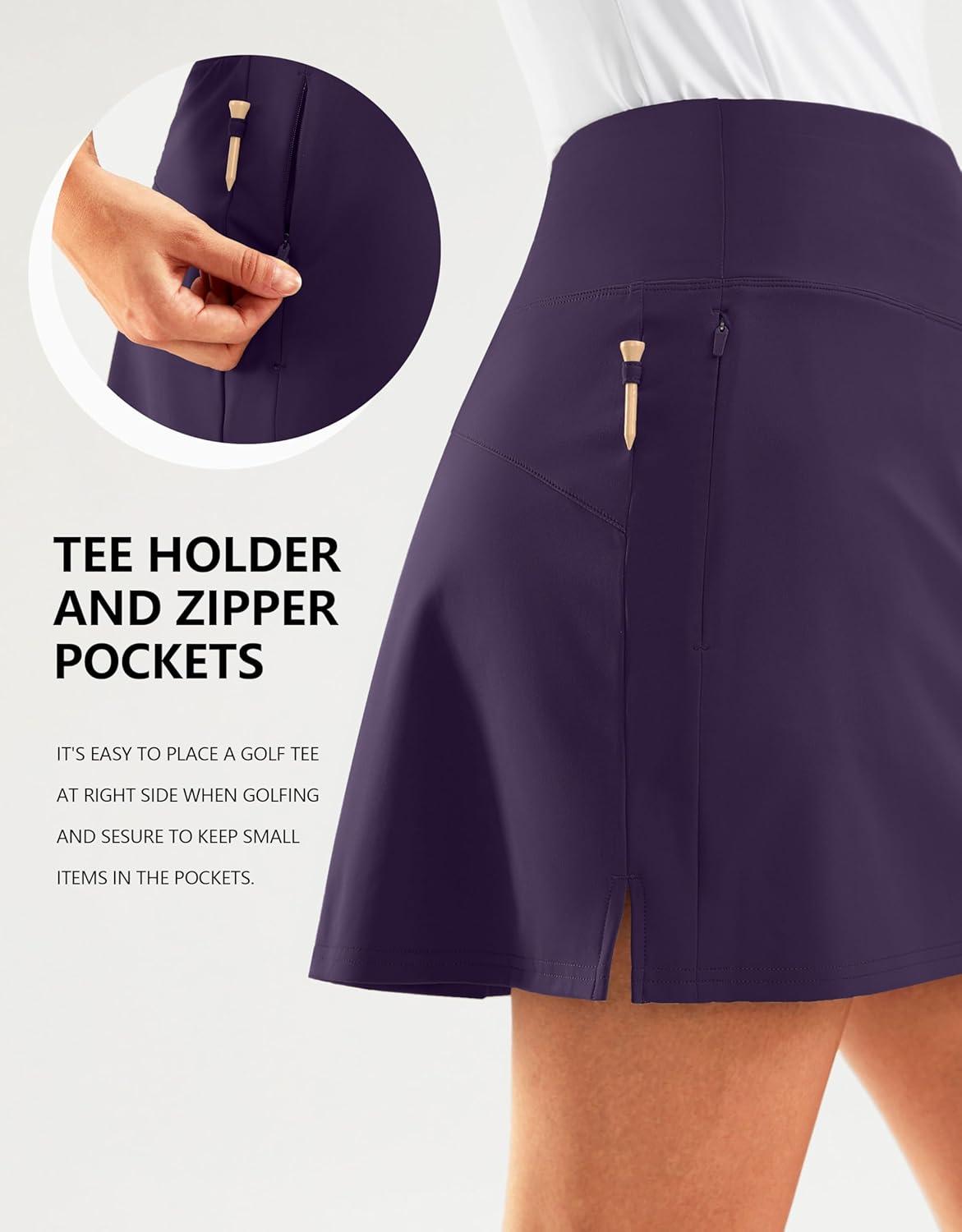 SANTINY 16″ Golf Skorts Skirts for Women Zipper Pockets Women’s High Waisted Tennis Skirt Athletic Skort(Deep Purple)