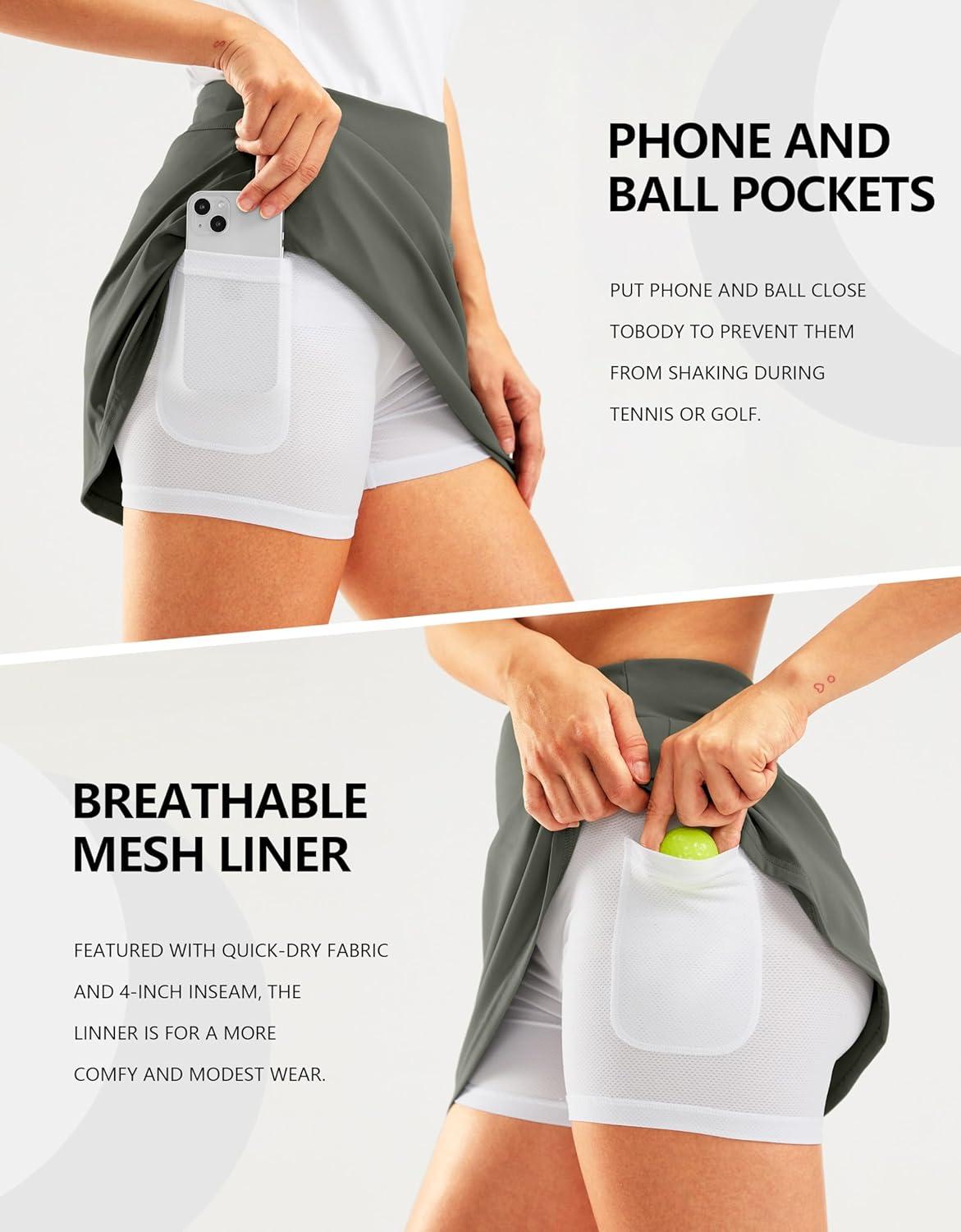 SANTINY 16″ Golf Skorts Skirts for Women Zipper Pockets Women’s High Waisted Tennis Skirt Athletic Skort(Grey Sage)