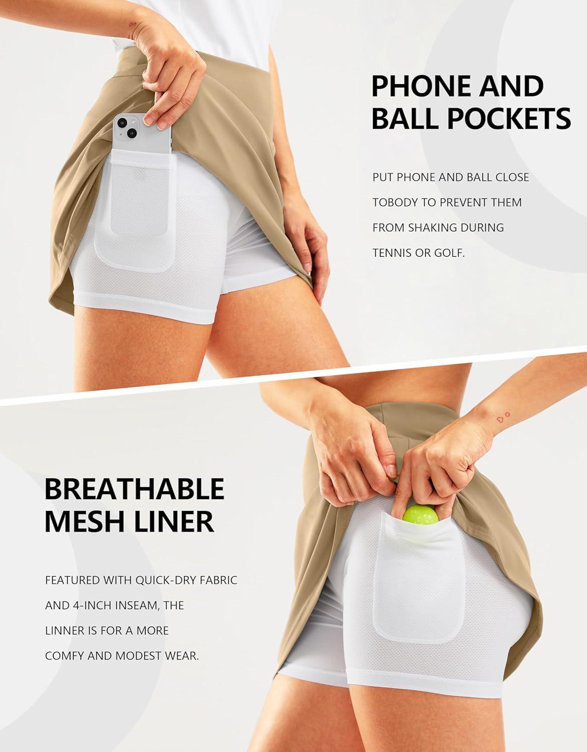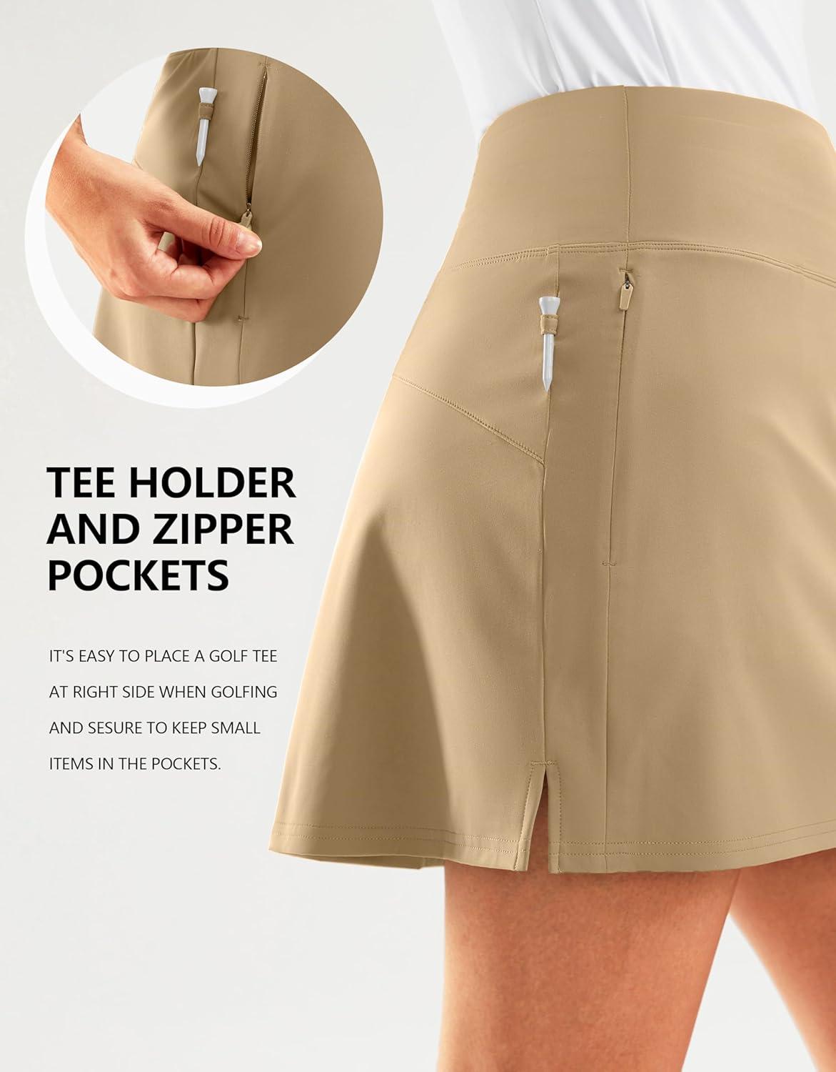 SANTINY 16″ Golf Skorts Skirts for Women Zipper Pockets Women’s High Waisted Tennis Skirt Athletic Skort(Khaki)