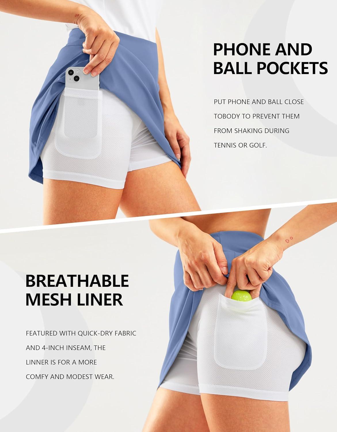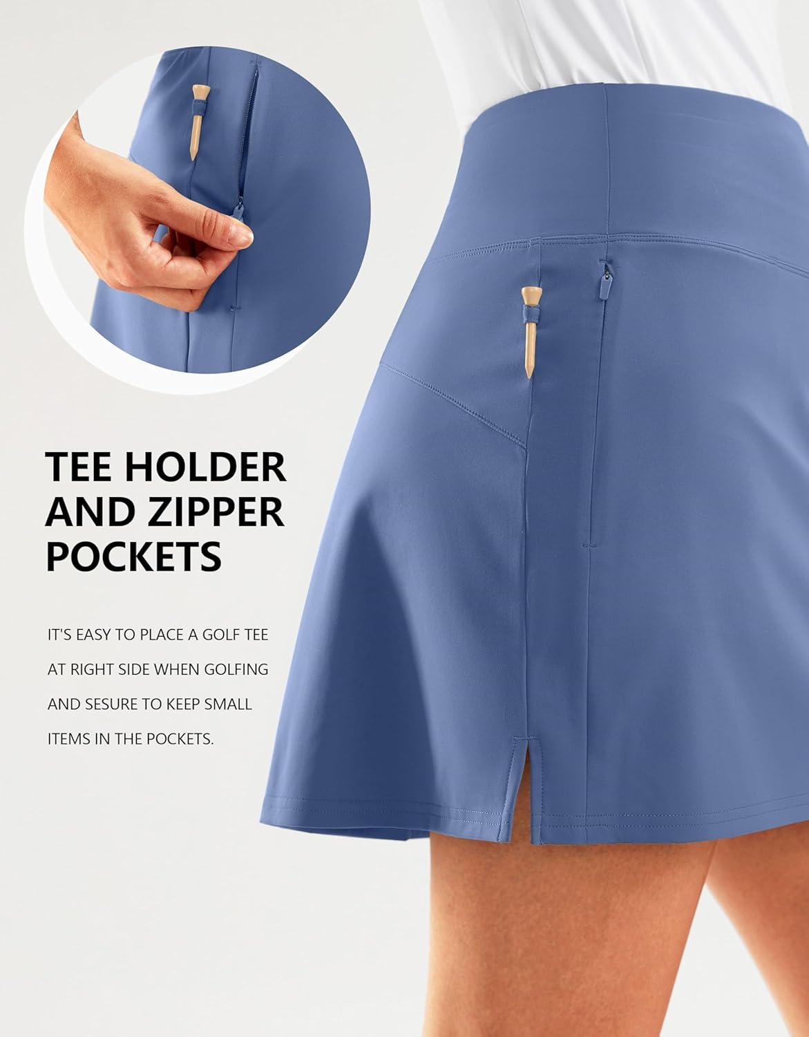 SANTINY 16″ Golf Skorts Skirts for Women Zipper Pockets Women’s High Waisted Tennis Skirt Athletic Skort(Light Blue)