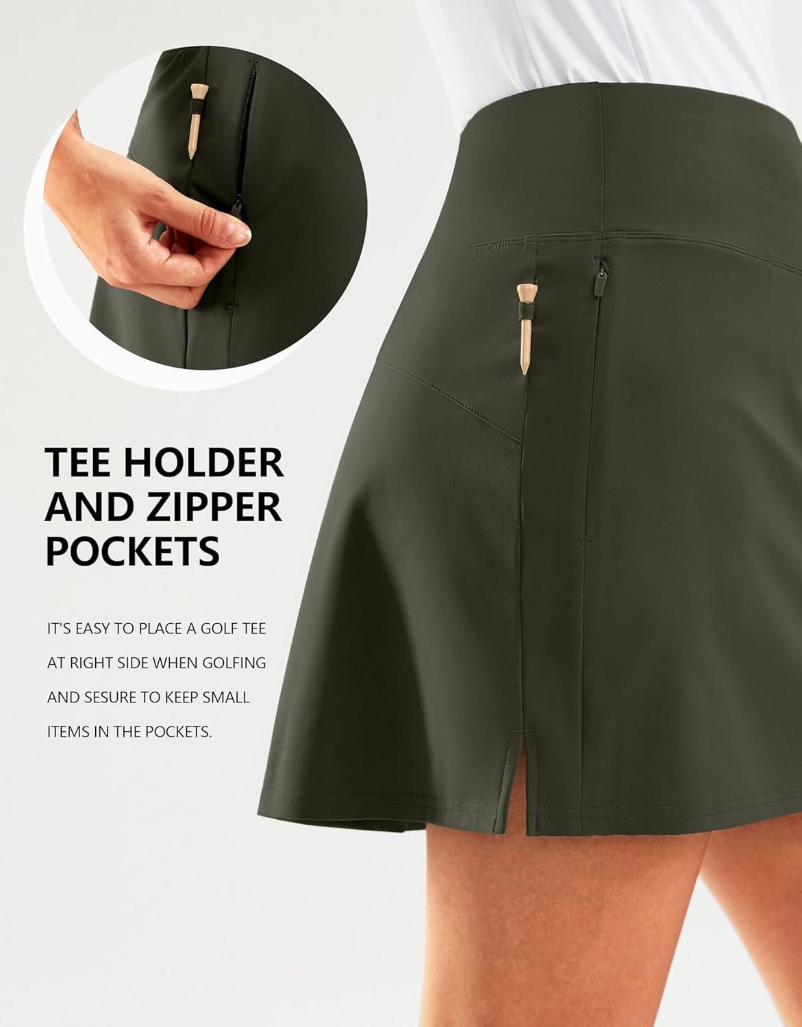 SANTINY 16″ Golf Skorts Skirts for Women Zipper Pockets Women’s High Waisted Tennis Skirt Athletic Skort(Olive)