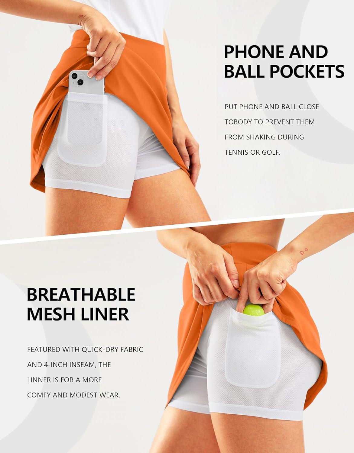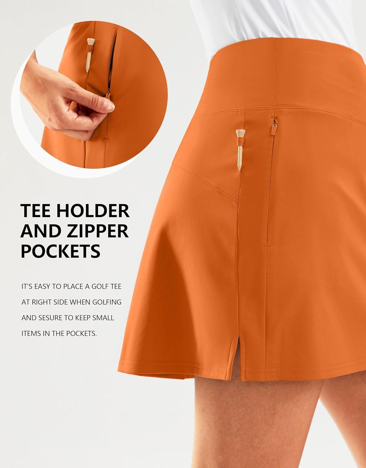 SANTINY 16″ Golf Skorts Skirts for Women Zipper Pockets Women’s High Waisted Tennis Skirt Athletic Skort(Orange)