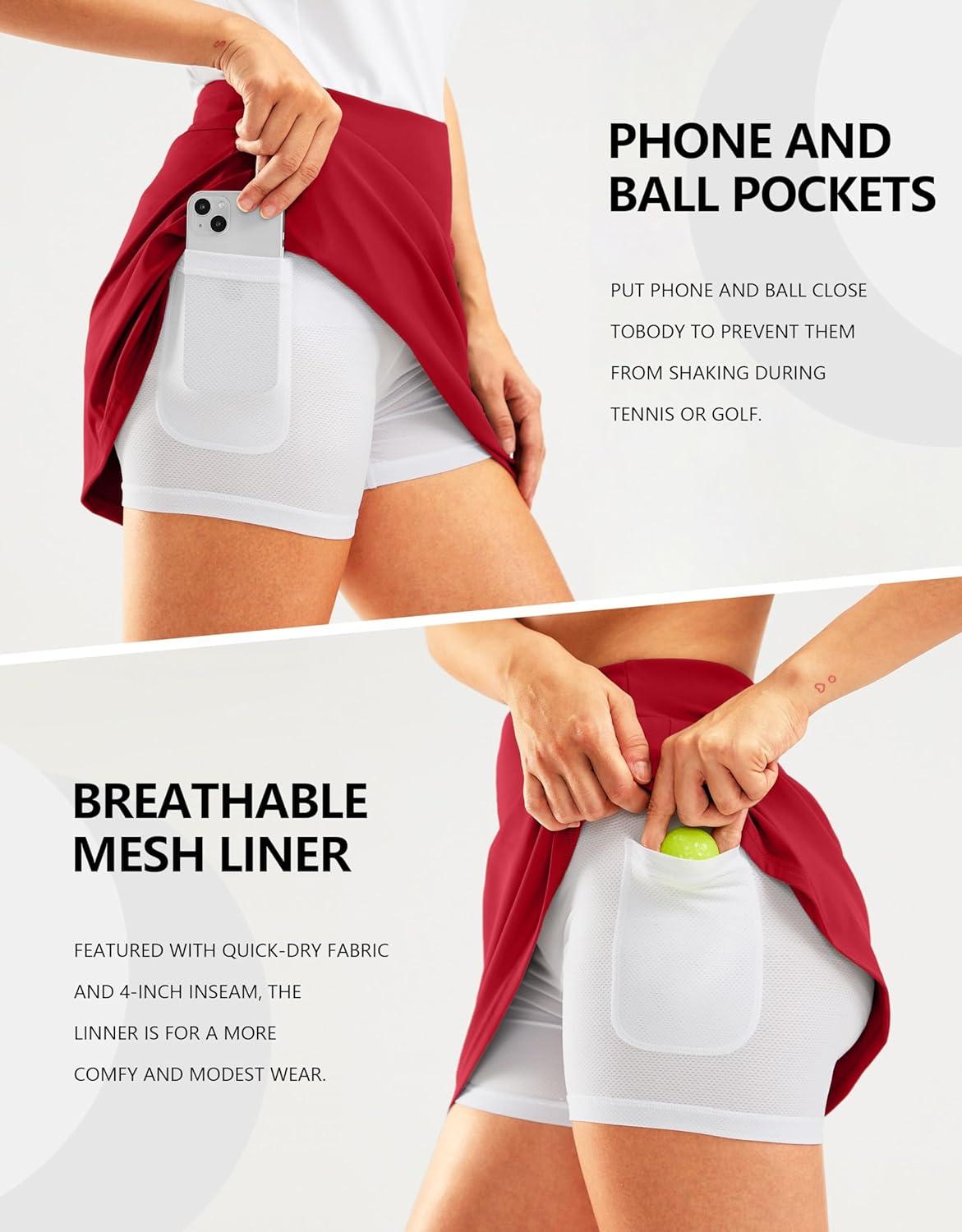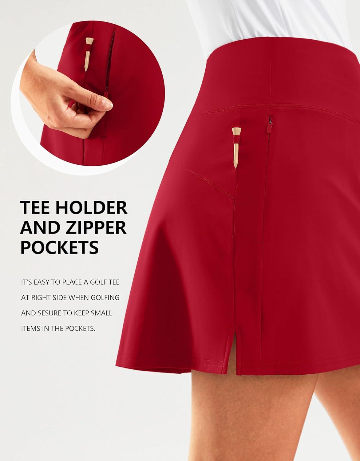 SANTINY 16″ Golf Skorts Skirts for Women Zipper Pockets Women’s High Waisted Tennis Skirt Athletic Skort(Red)