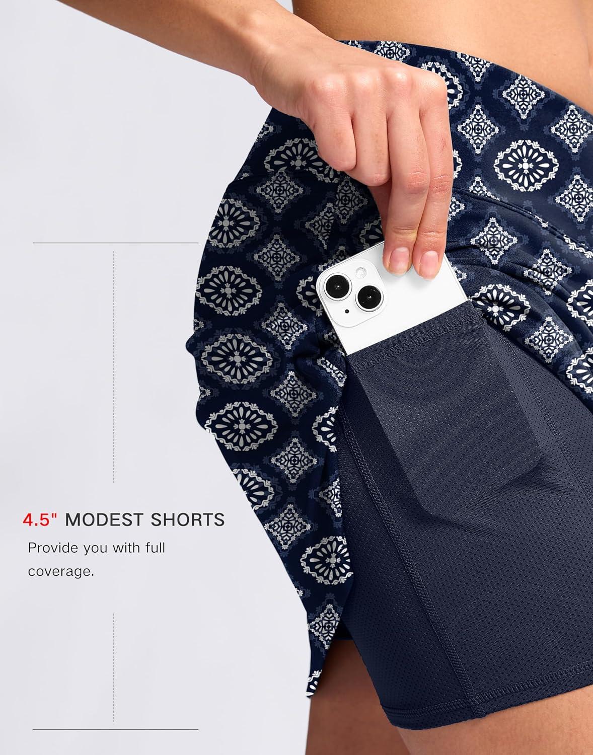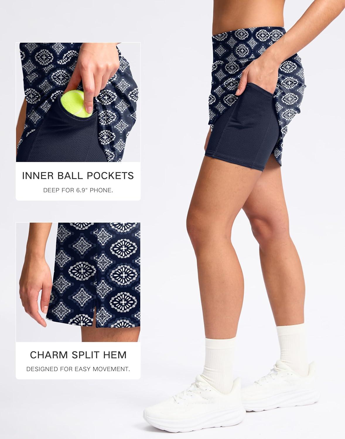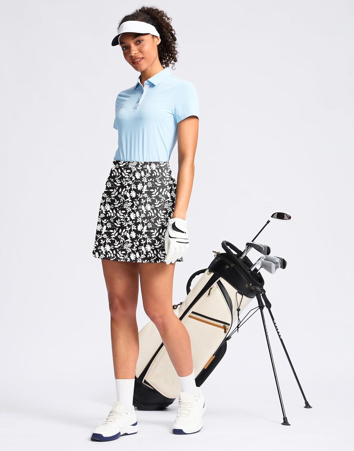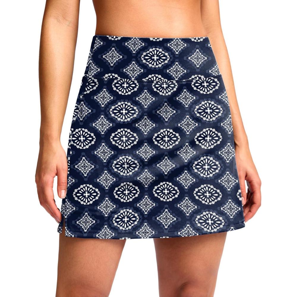 SANTINY 16″ Skorts for Women with 2 Pockets High Waisted A Line Pickleball Golf Skort Casual Athletic Tennis Skirt(Blue Flower)