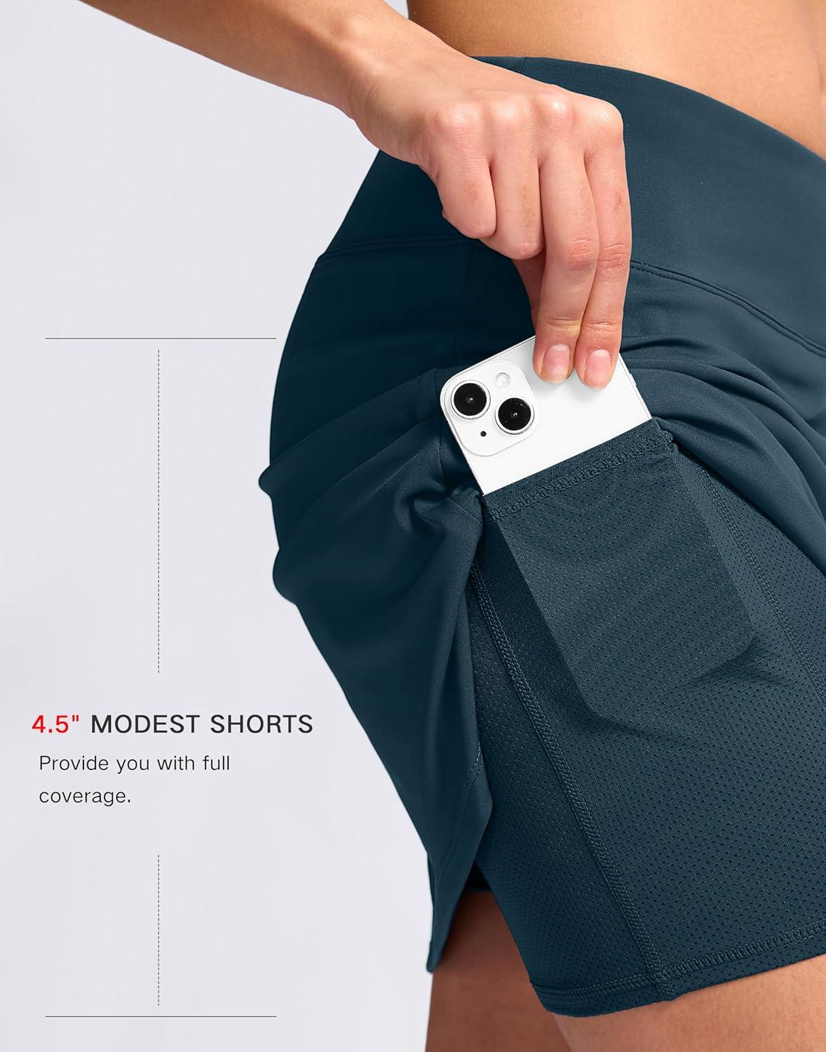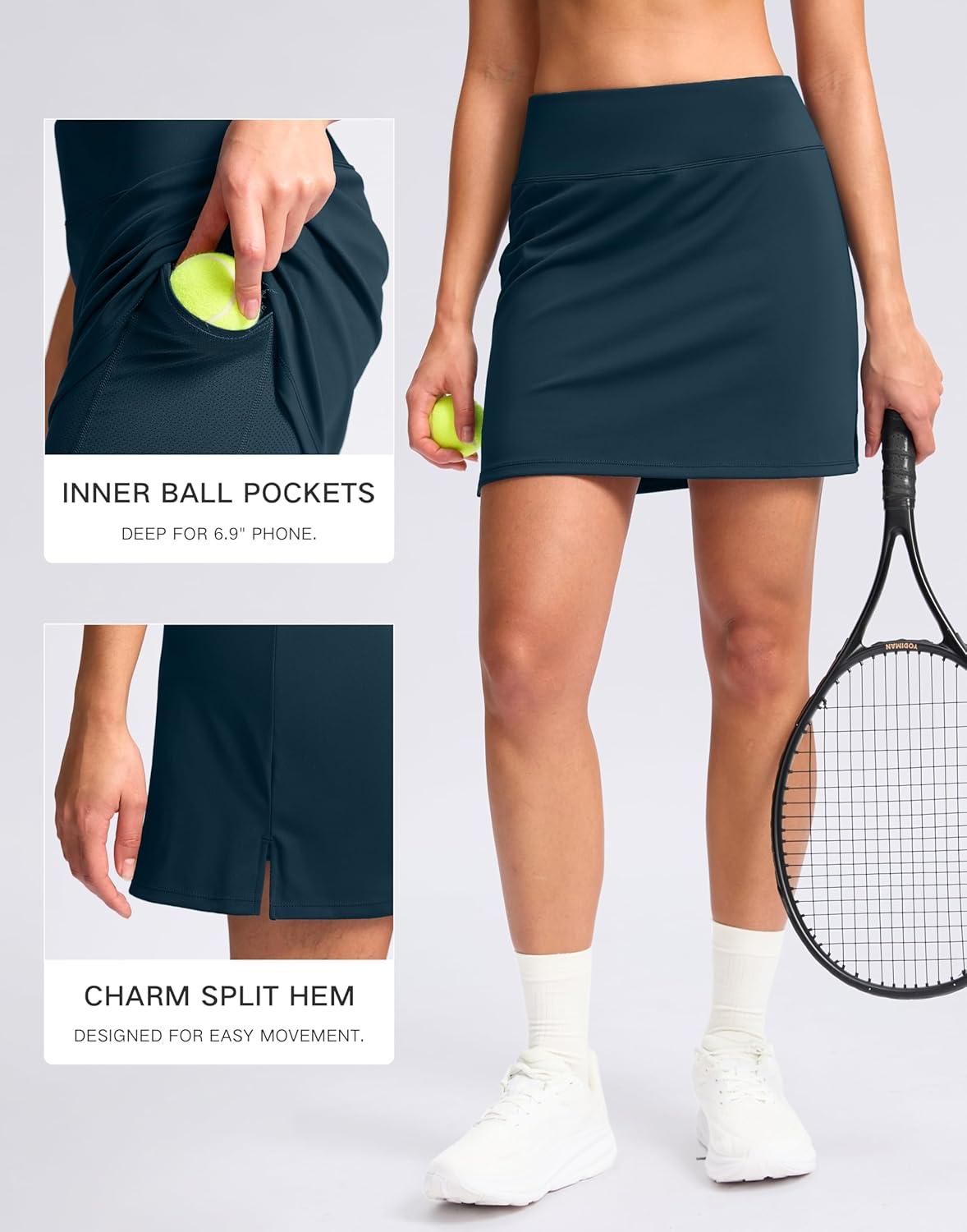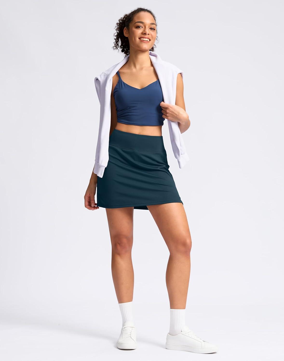 SANTINY 16″ Skorts for Women with 2 Pockets High Waisted A Line Pickleball Golf Skort Casual Athletic Tennis Skirt(Green Indigo)