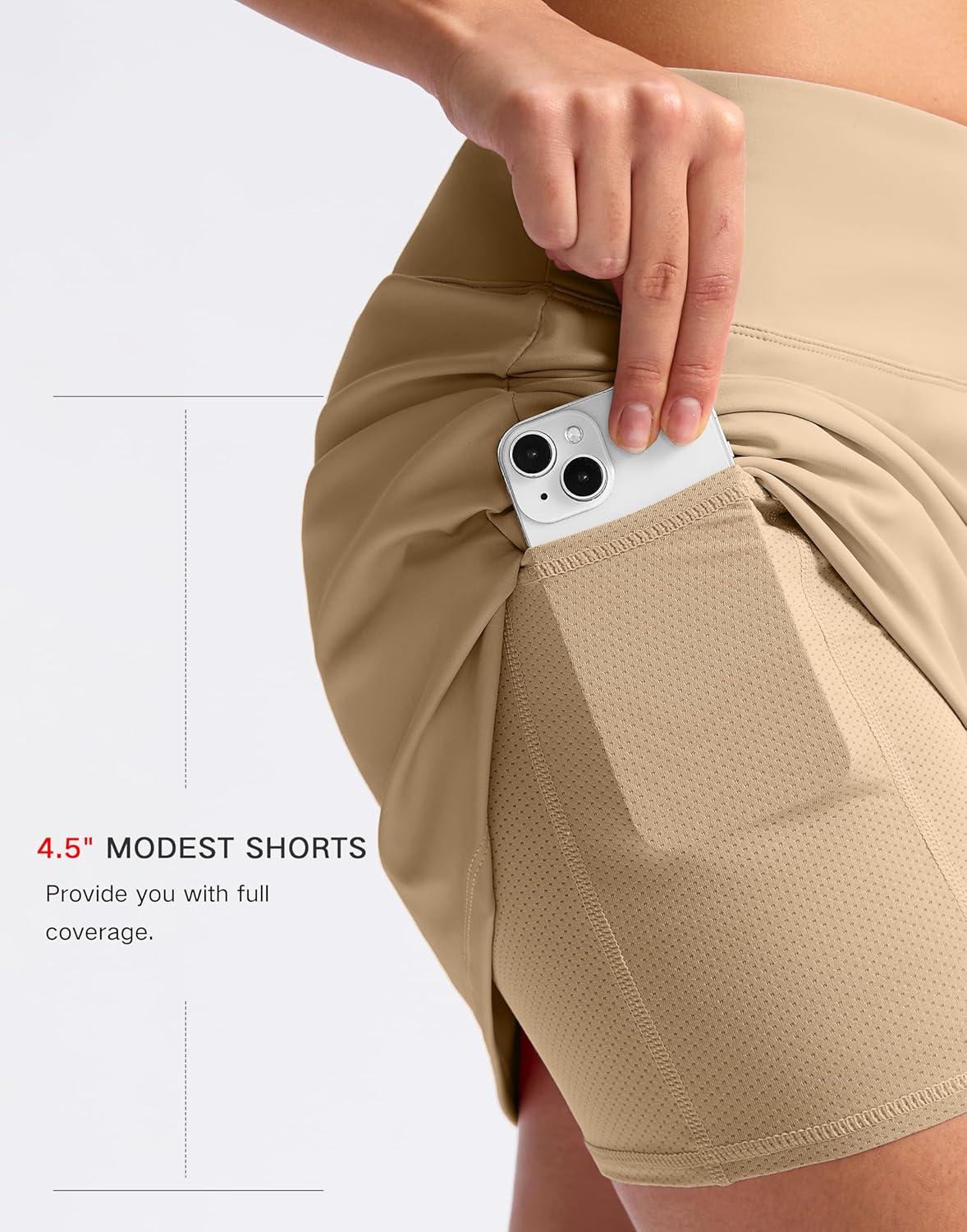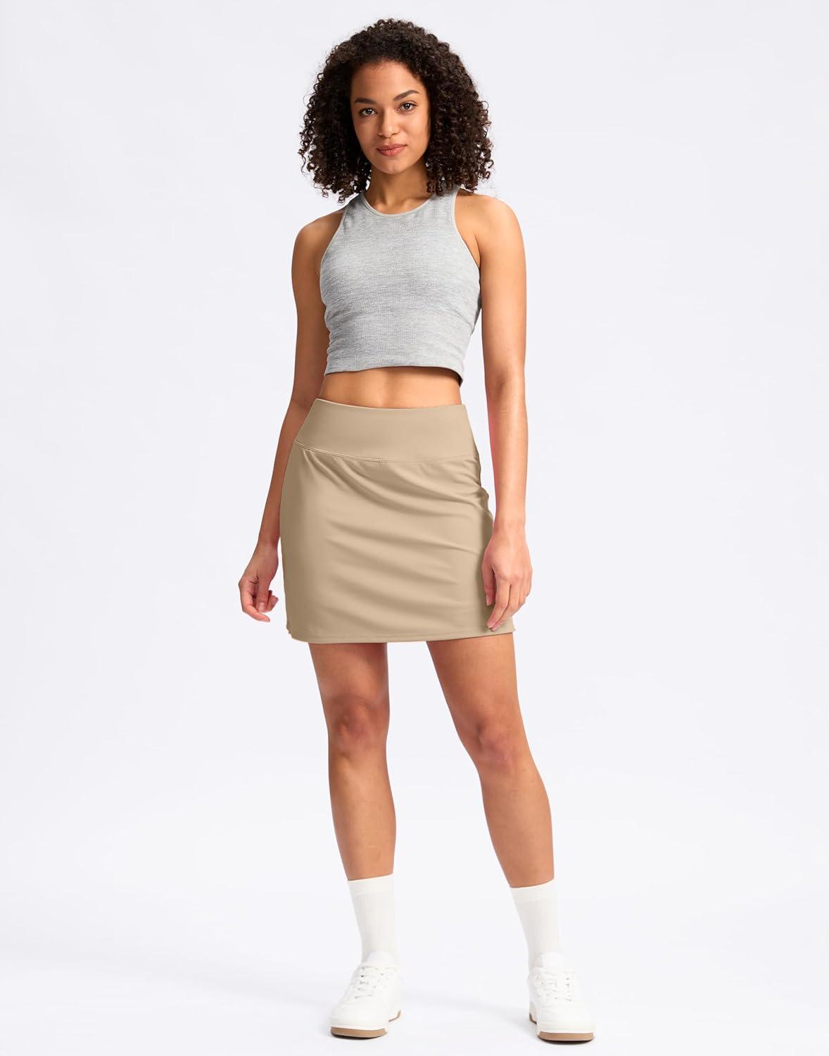 SANTINY 16″ Skorts for Women with 2 Pockets High Waisted A Line Pickleball Golf Skort Casual Athletic Tennis Skirt(Khaki)