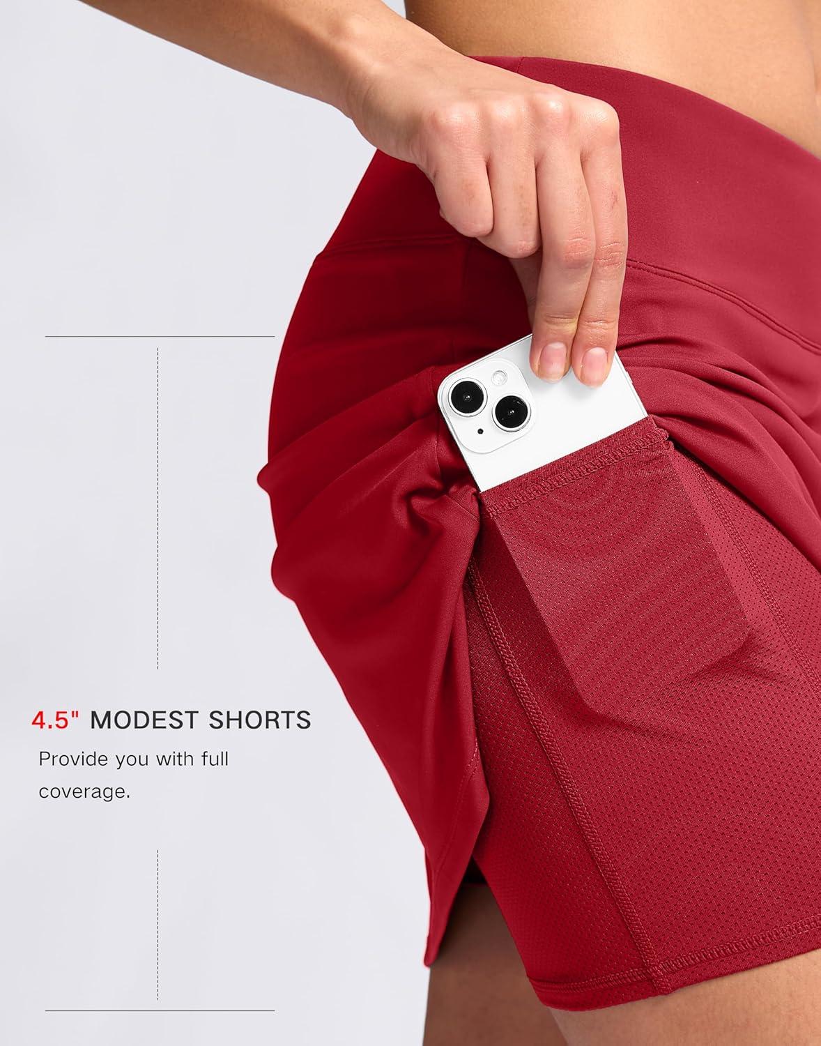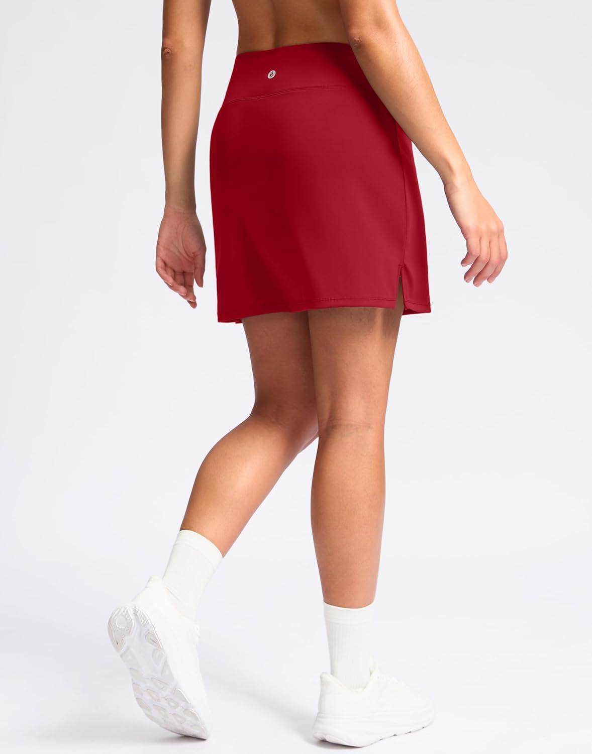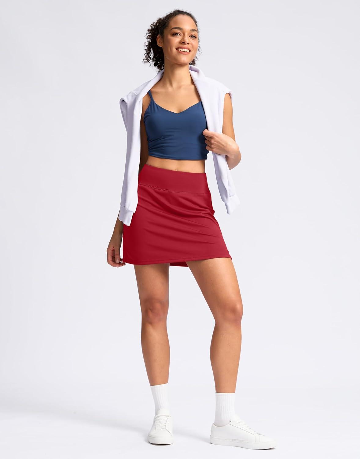 SANTINY 16″ Skorts for Women with 2 Pockets High Waisted A Line Pickleball Golf Skort Casual Athletic Tennis Skirt(Red)