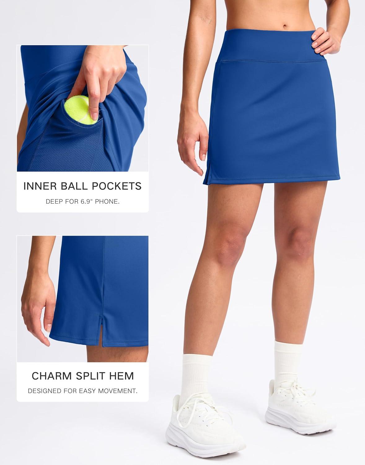 SANTINY 16″ Skorts for Women with 2 Pockets High Waisted A Line Pickleball Golf Skort Casual Athletic Tennis Skirt(Royal Blue)