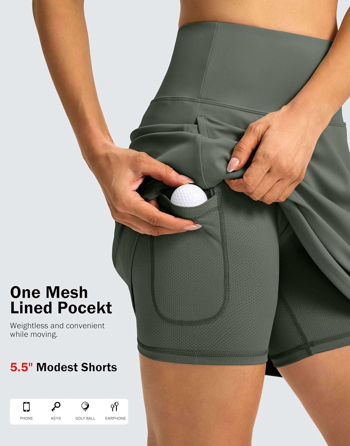SANTINY 18″ Skorts for Women 3 Pockets High Waist Long Athletic Tennis Skirt Golf Skort for Casual Summer Travel(Grey Sage)