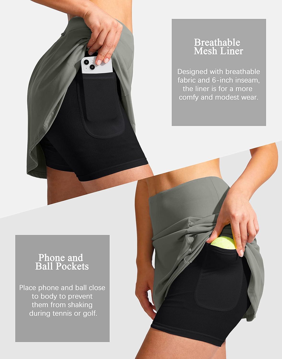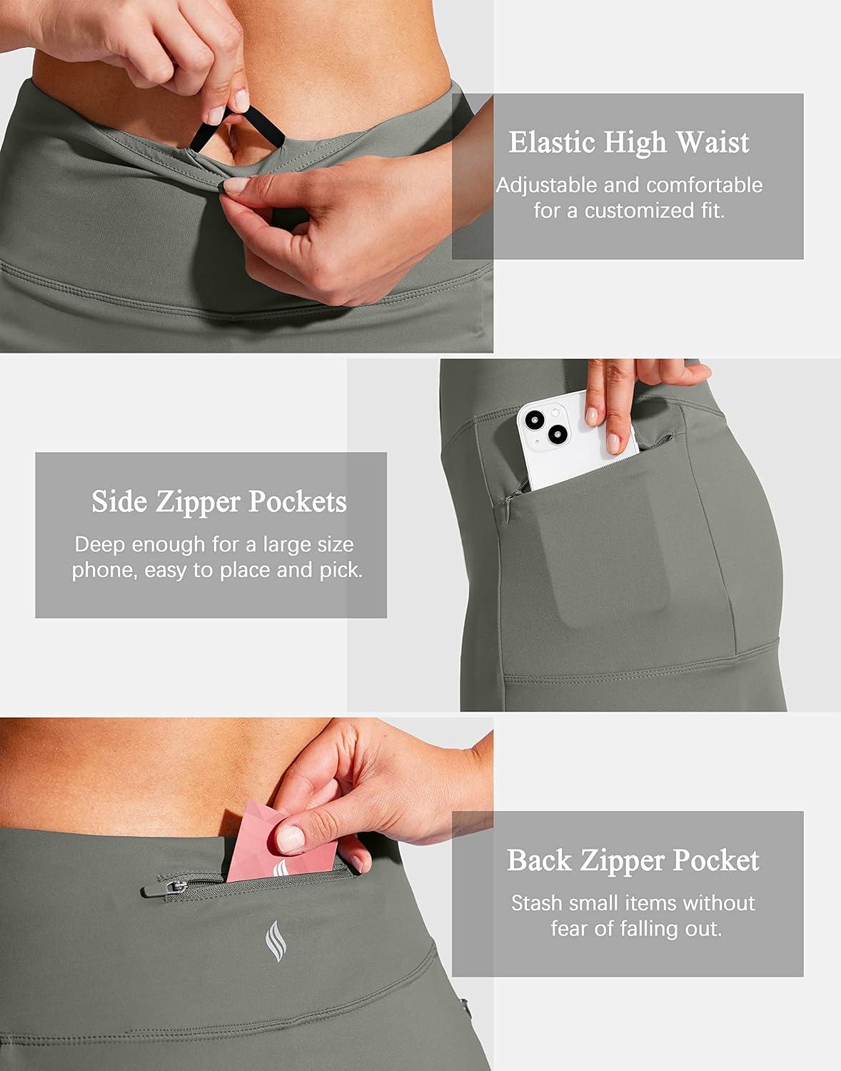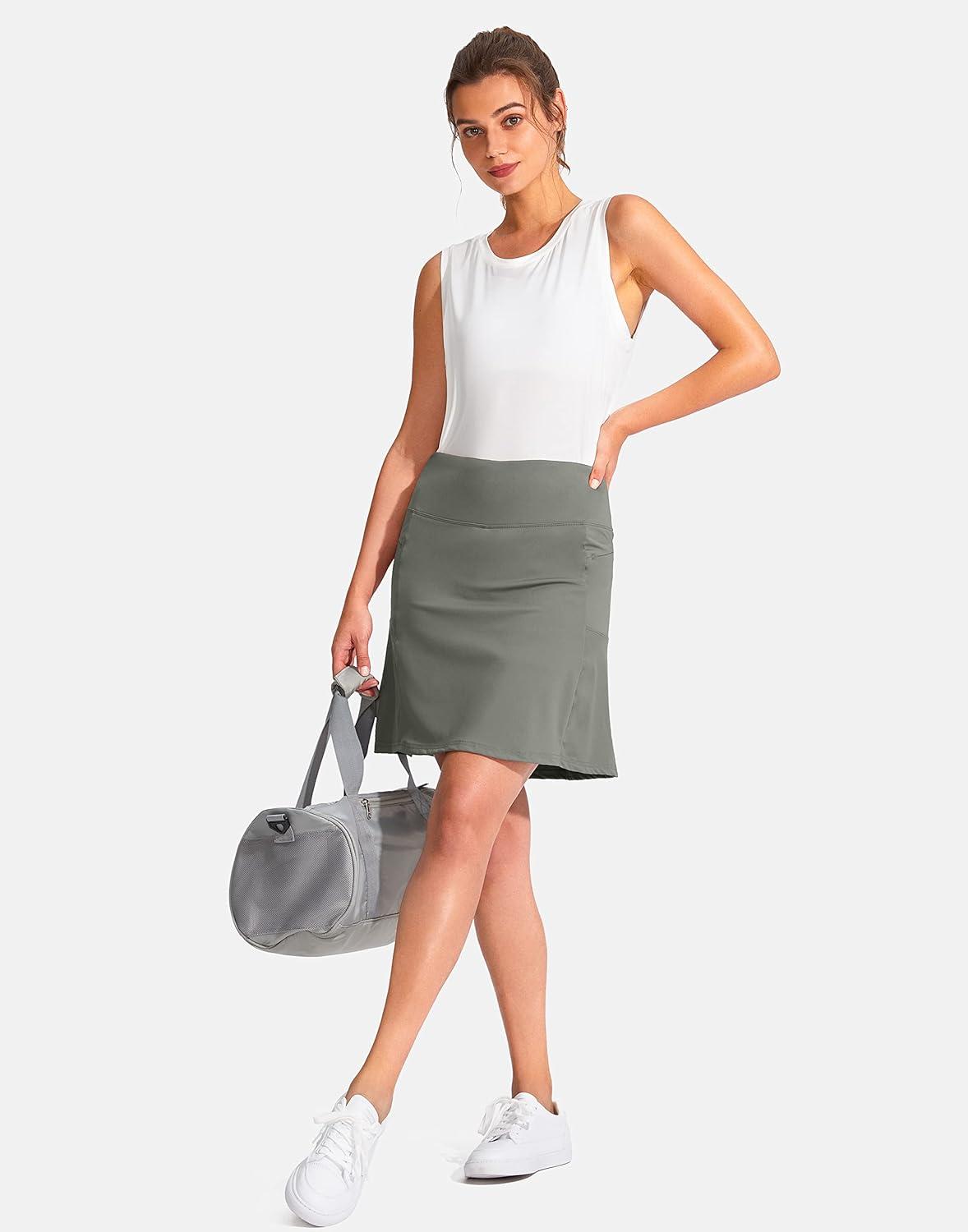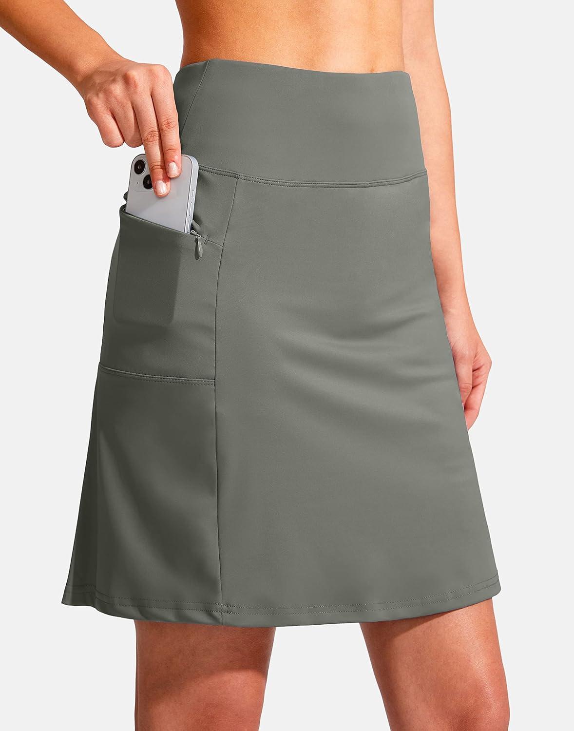 SANTINY 19″ Golf Skorts Skirts for Women Zipper Pockets Knee Length Skort Women’s High Waist Athletic Tennis Skirt(Grey Sage)
