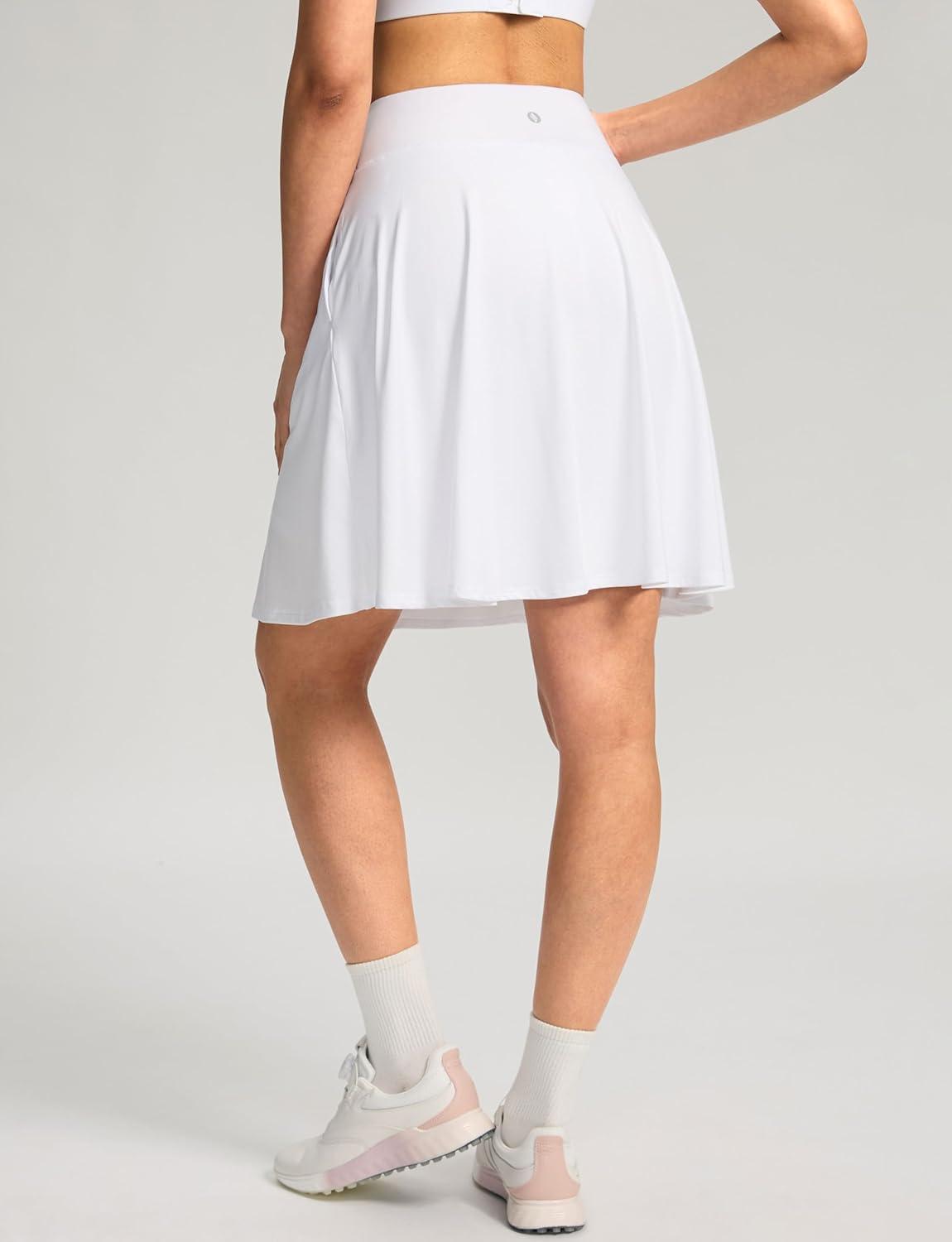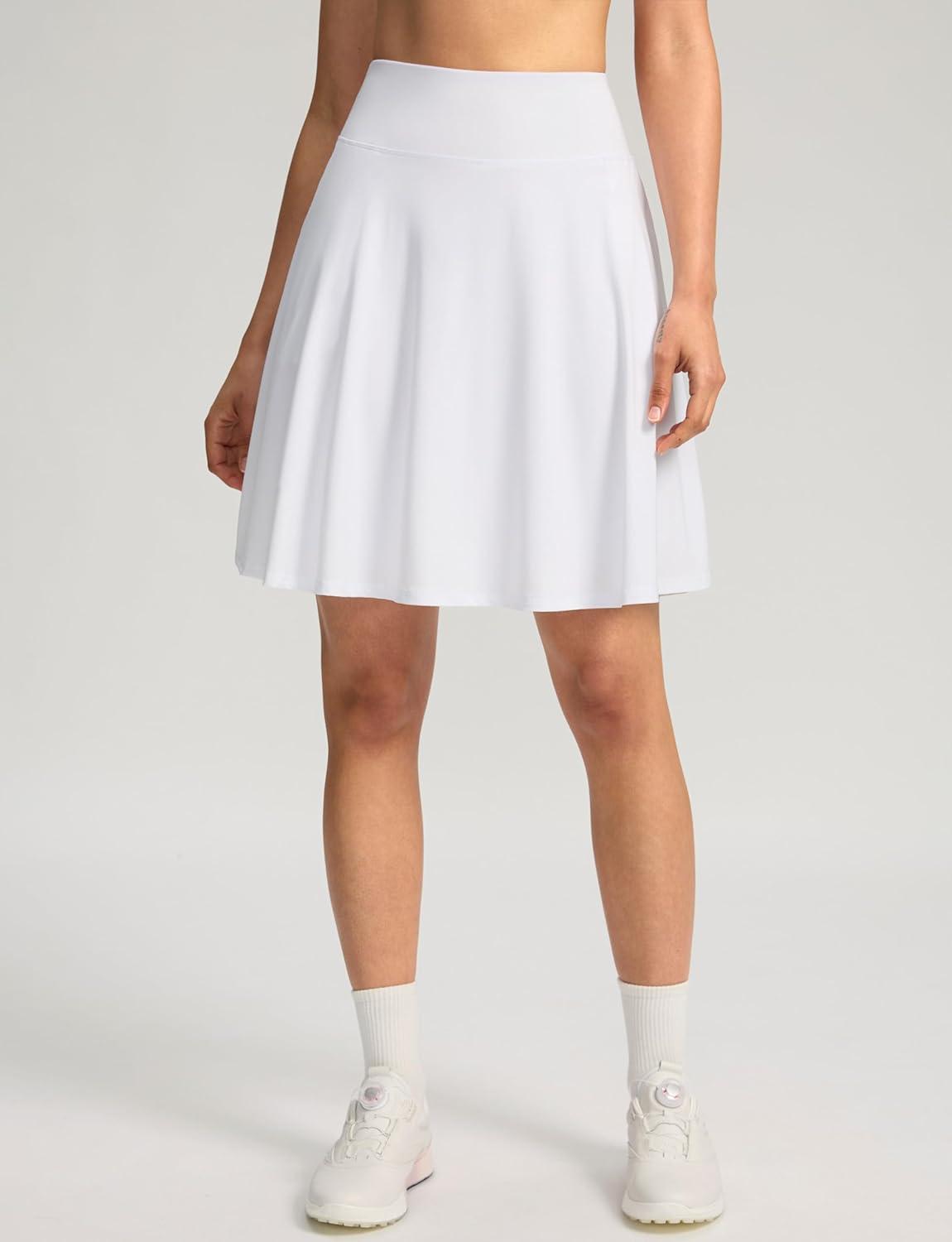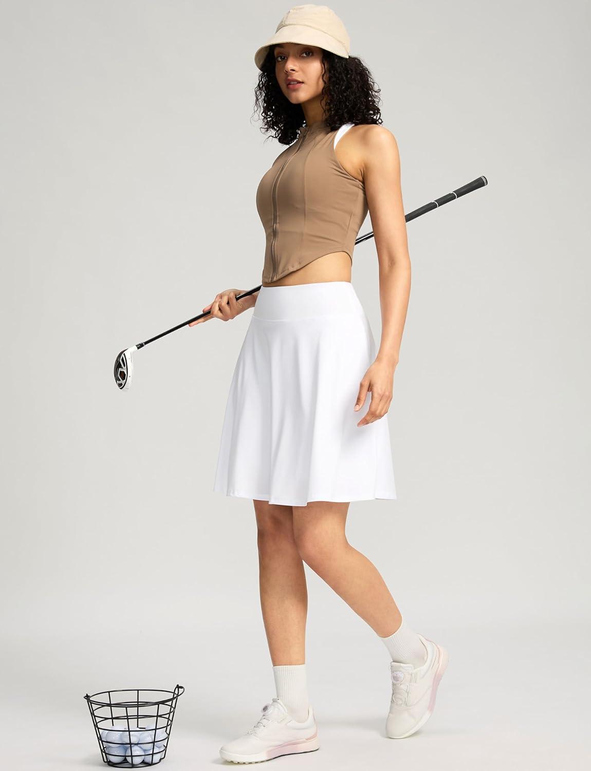 SANTINY 20” Knee Length Skorts for Woman 4 Pockets High Waisted Women’s Tennis Golf Skirts Long Athletic Skirt with Shorts(A White)