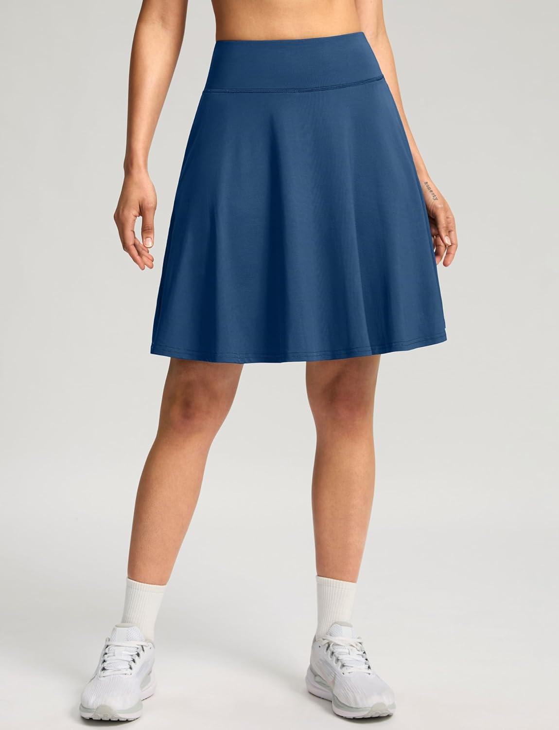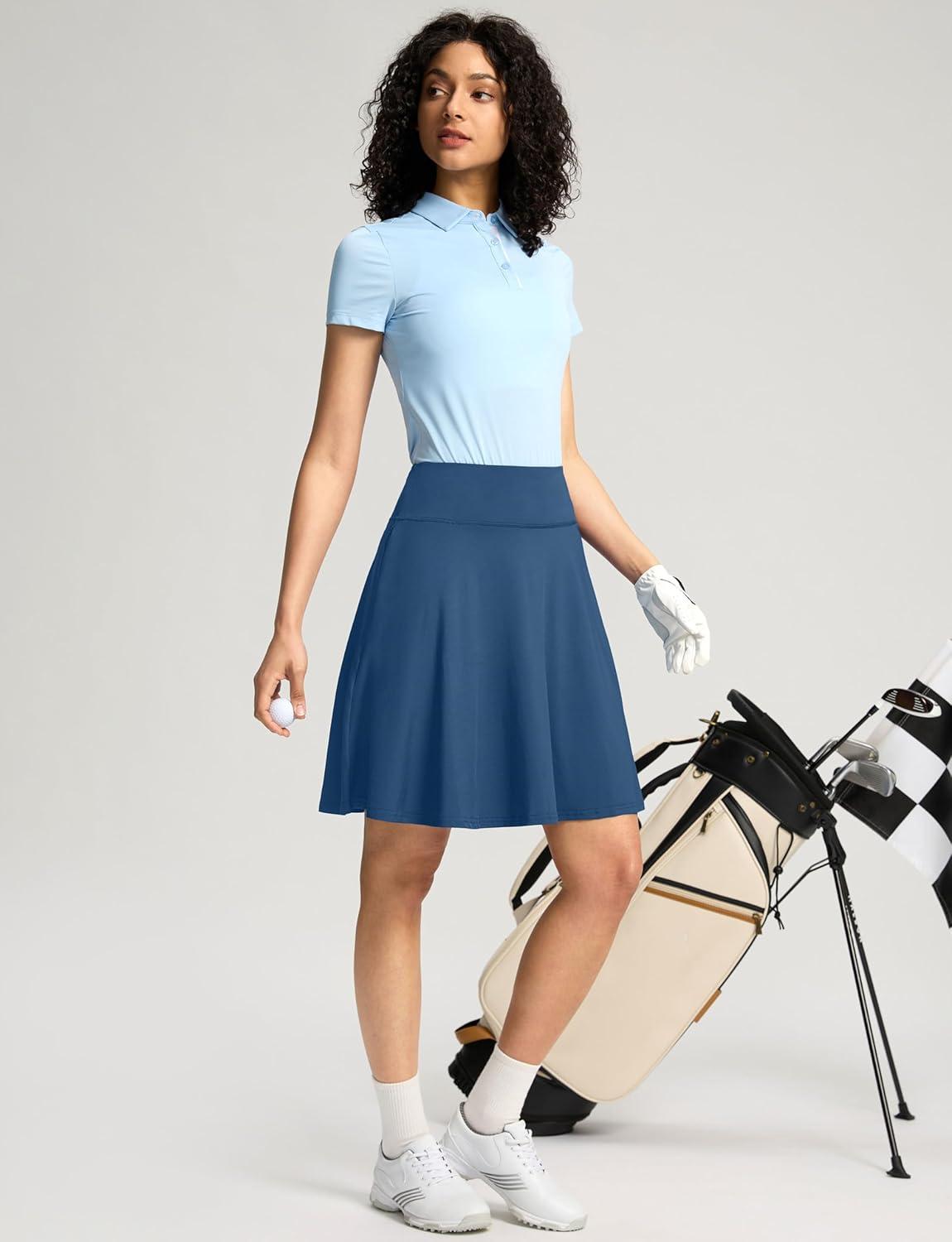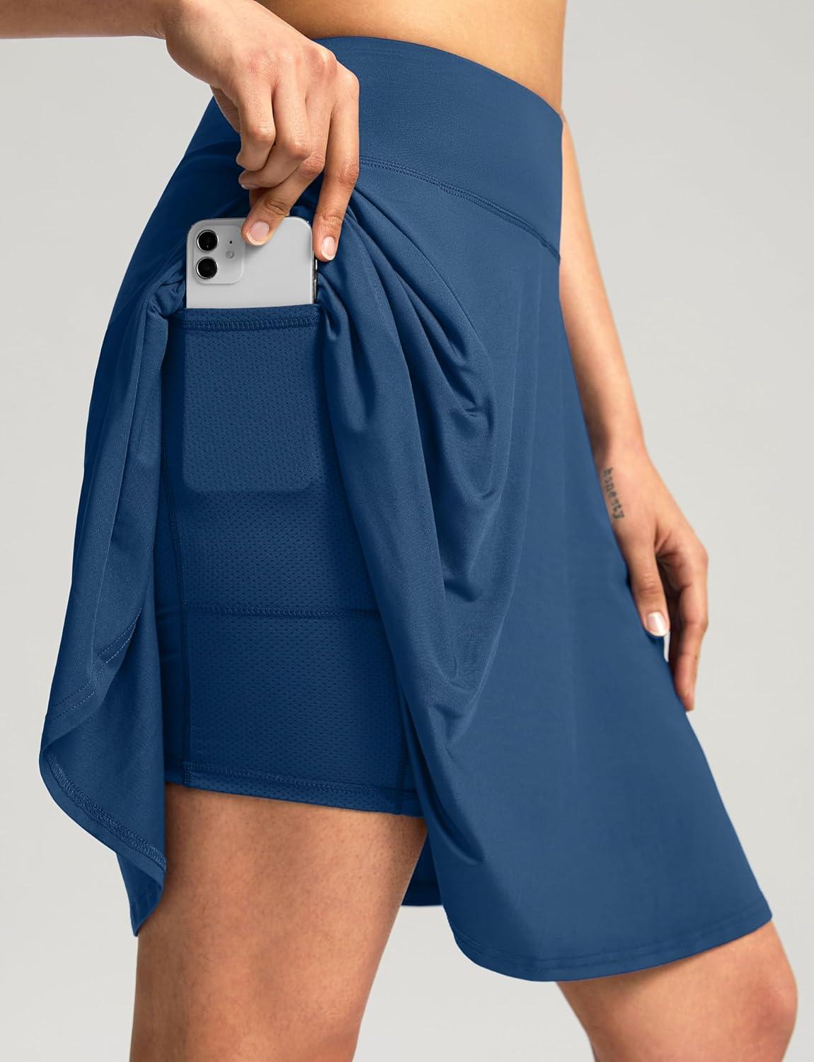 SANTINY 20” Knee Length Skorts for Woman 4 Pockets High Waisted Women’s Tennis Golf Skirts Long Athletic Skirt with Shorts(Blue)