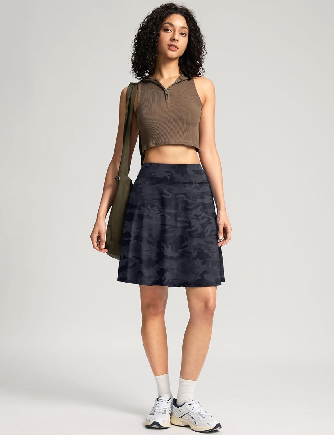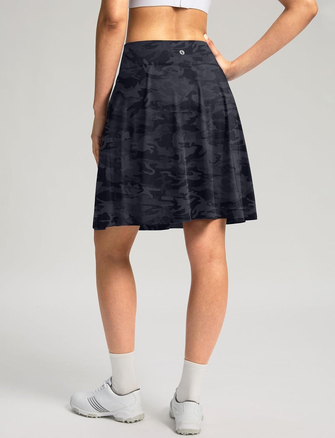SANTINY 20” Knee Length Skorts for Woman 4 Pockets High Waisted Women’s Tennis Golf Skirts Long Athletic Skirt with Shorts(Grey Camo)