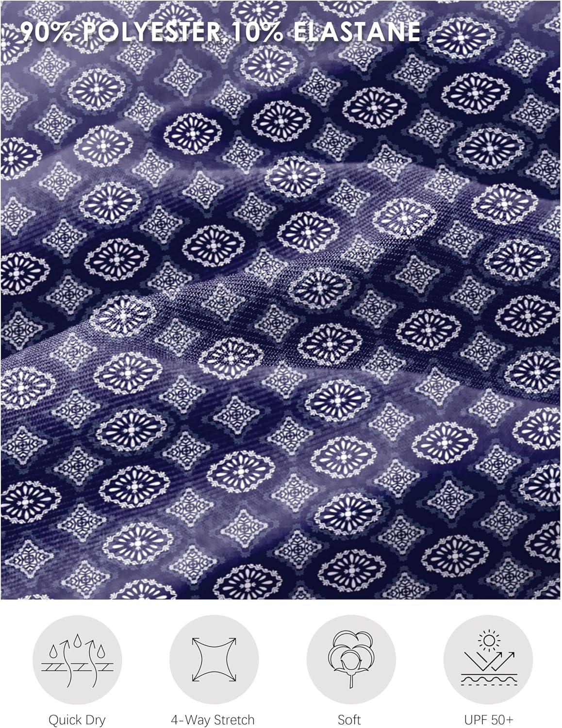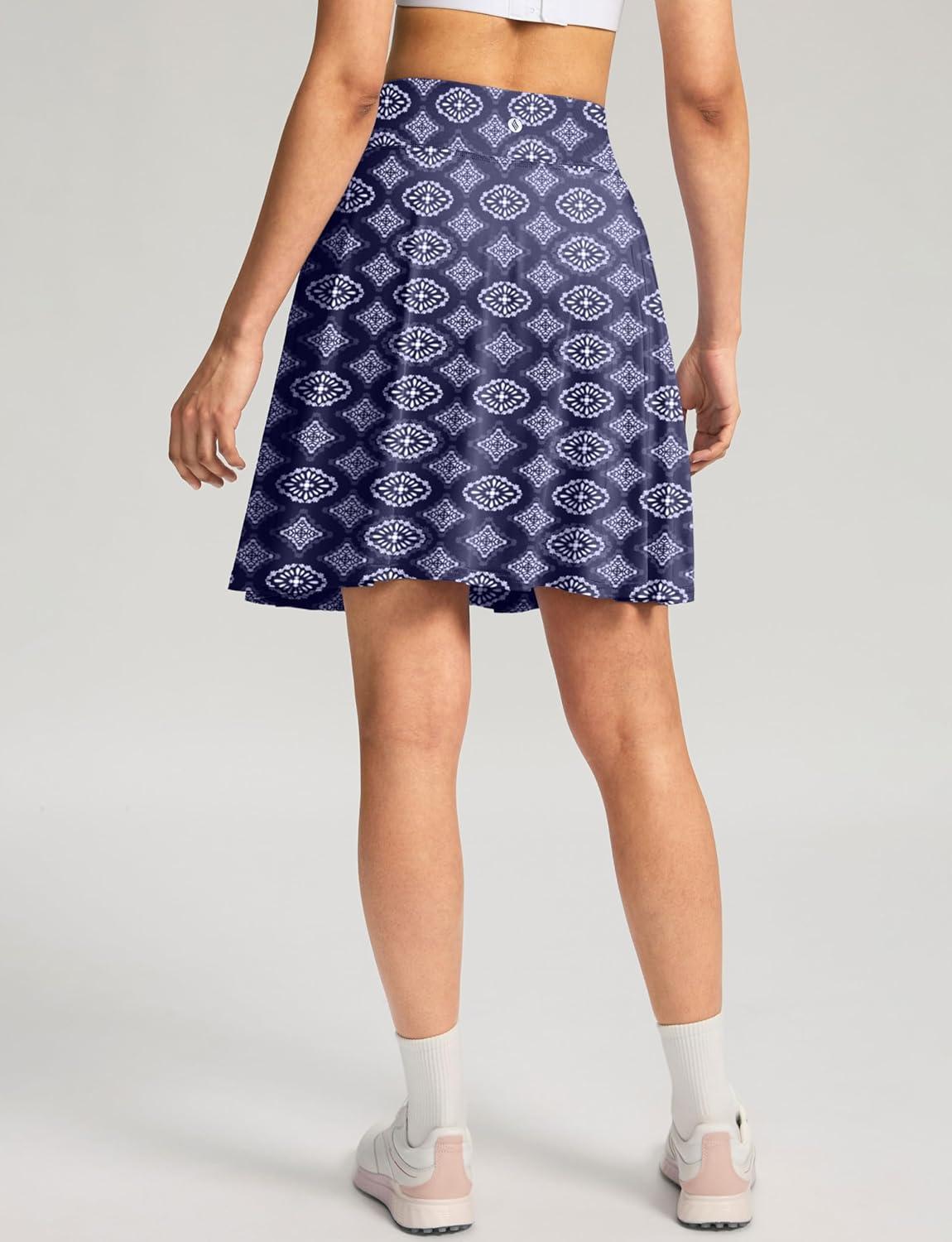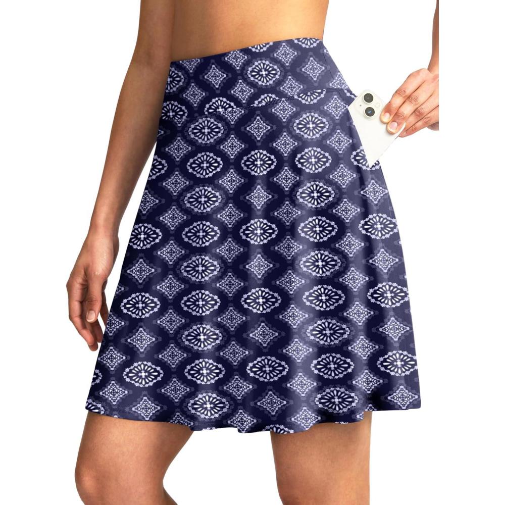 SANTINY 20” Knee Length Skorts for Woman 4 Pockets High Waisted Women’s Tennis Golf Skirts Long Athletic Skirt with Shorts(Patterned Navy Blue)