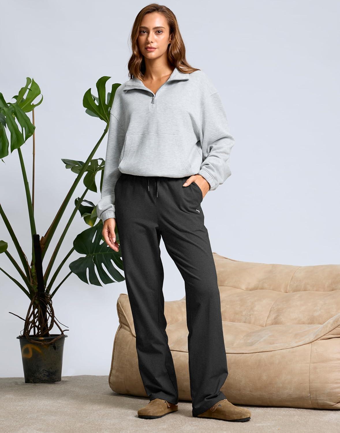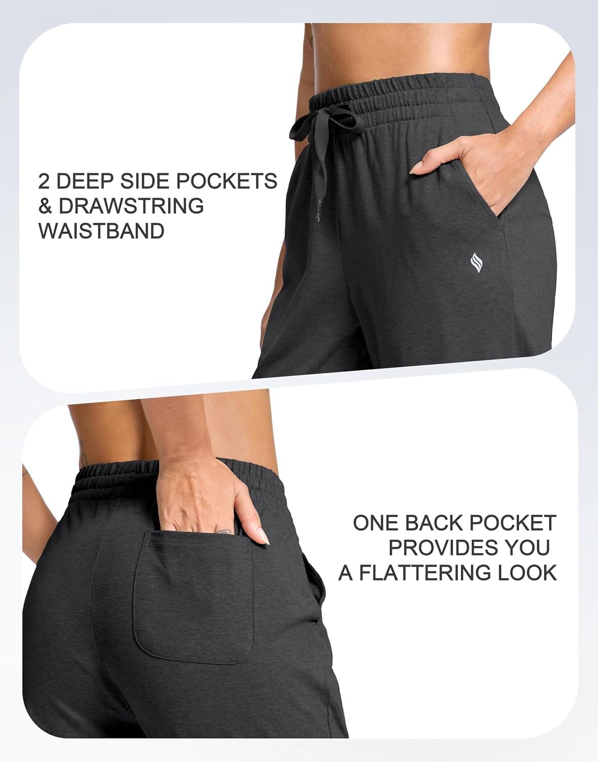 SANTINY 31″/33″/35″ Women’s Tall Cotton Sweatspants Yoga Lounge Casual Pants Open Bottom Sweat Pants for Women with Pockets(Charcoal)