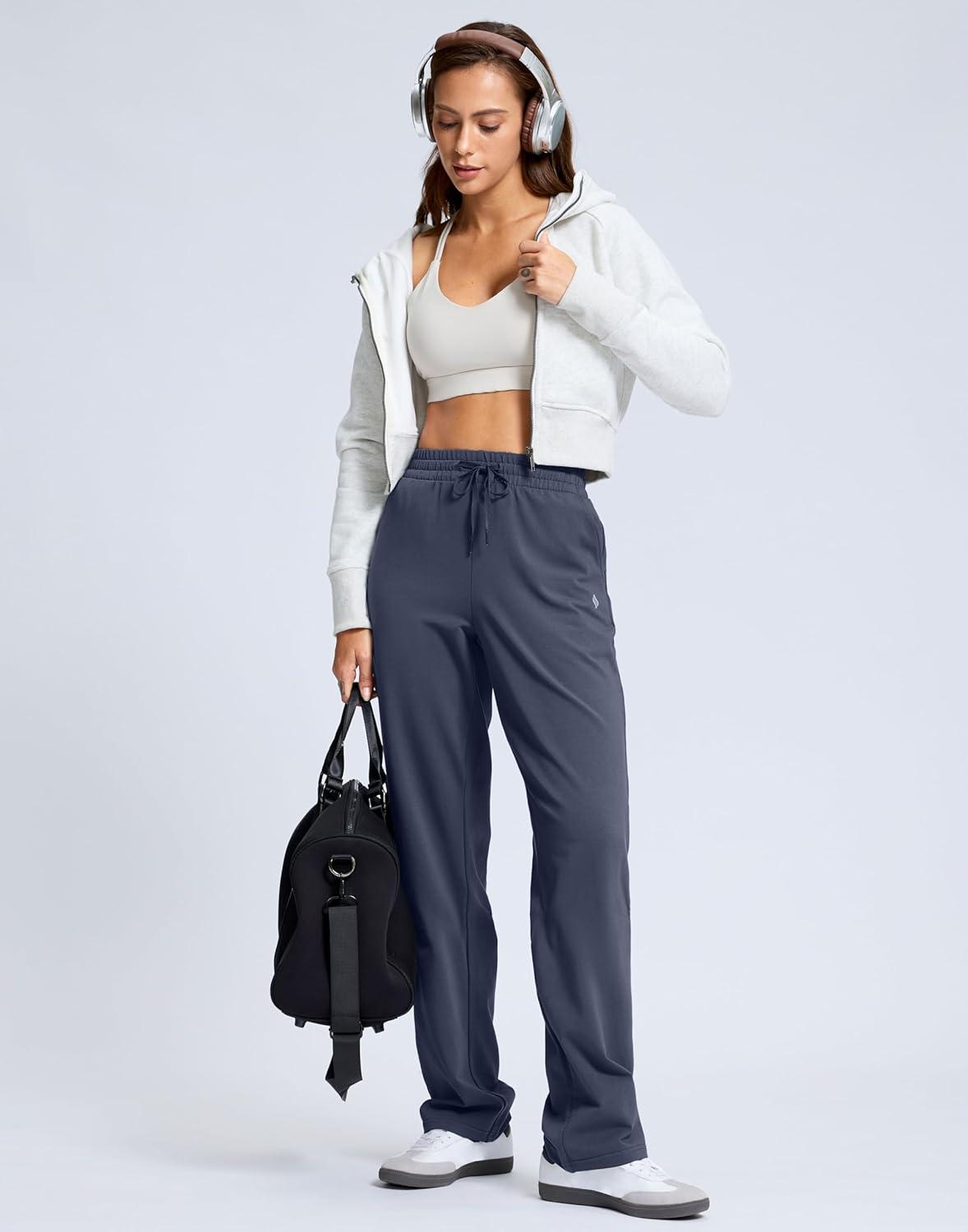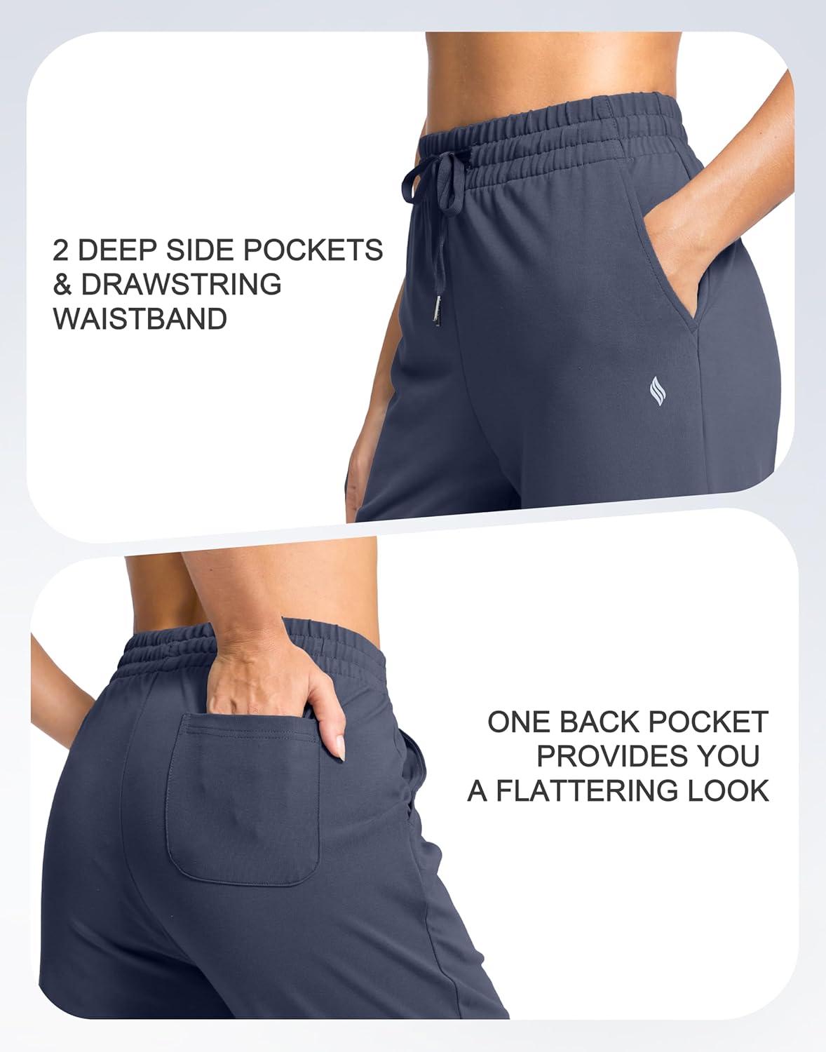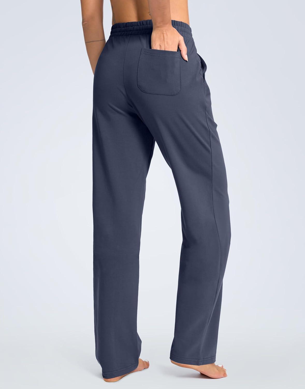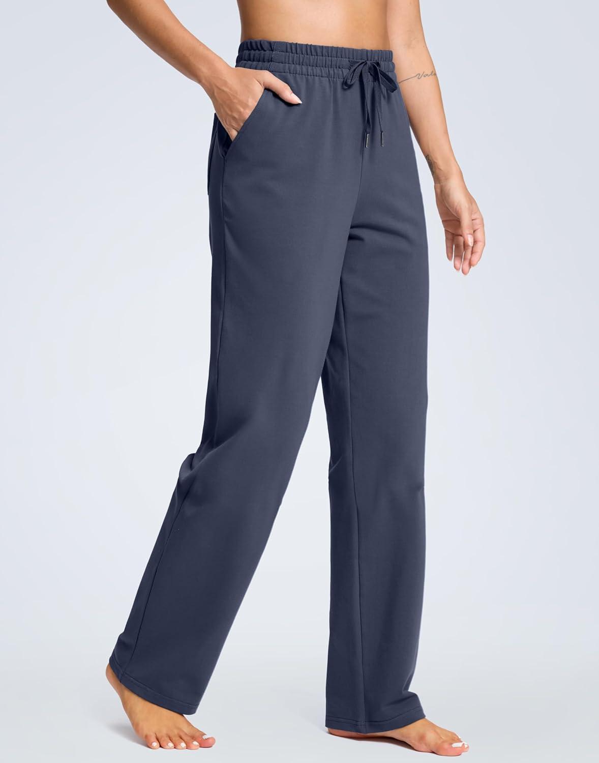 SANTINY 31″/33″/35″ Women’s Tall Cotton Sweatspants Yoga Lounge Casual Pants Open Bottom Sweat Pants for Women with Pockets(Dusty Blue)