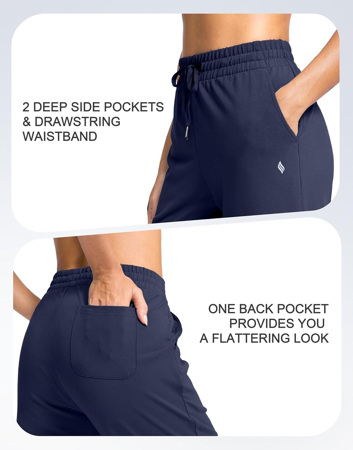 SANTINY 31″/33″/35″ Women’s Tall Cotton Sweatspants Yoga Lounge Casual Pants Open Bottom Sweat Pants for Women with Pockets(Navy)