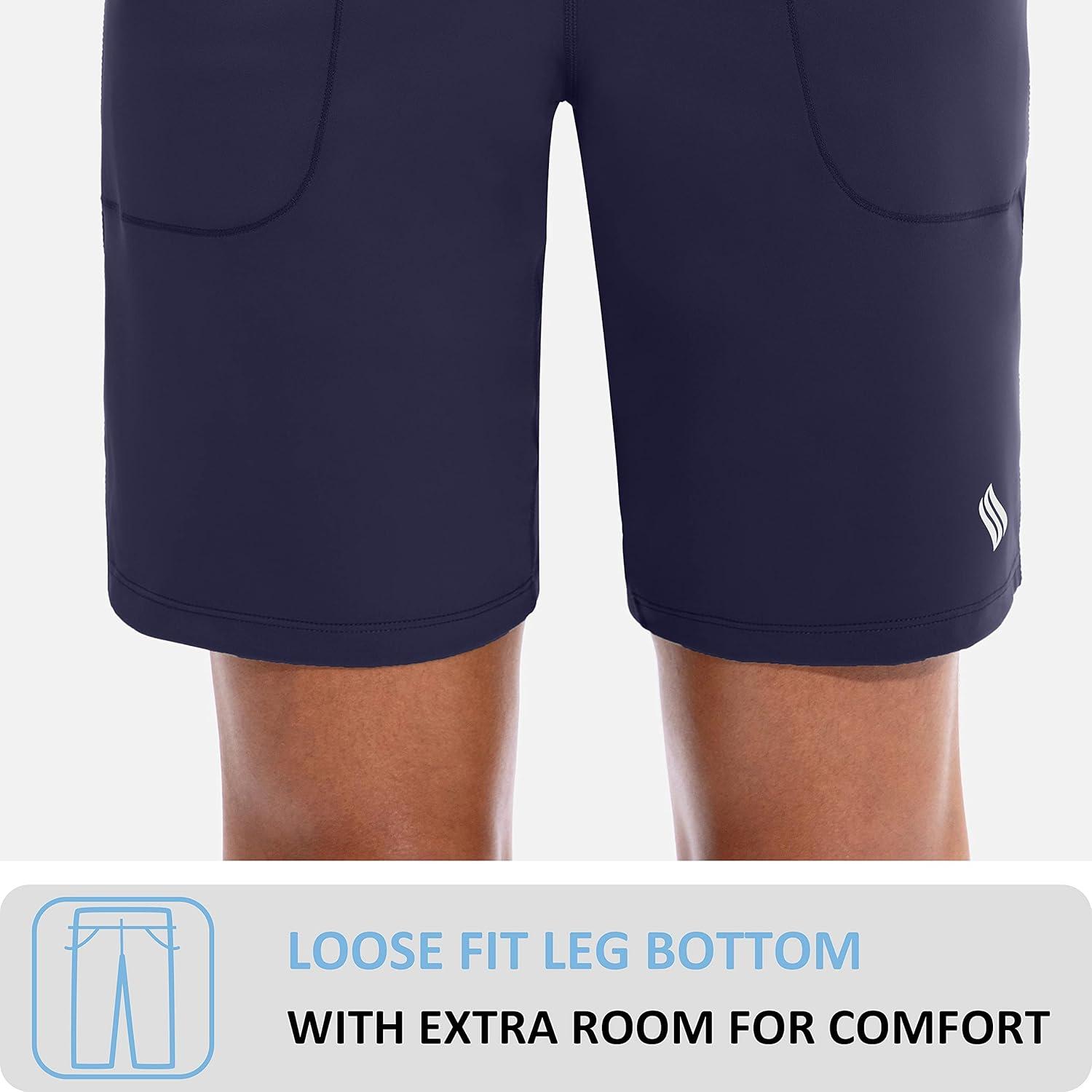 SANTINY Bermuda Shorts for Women with Zipper Pocket Womens High Waisted Long Shorts for Running Workout Athletic(Navy)