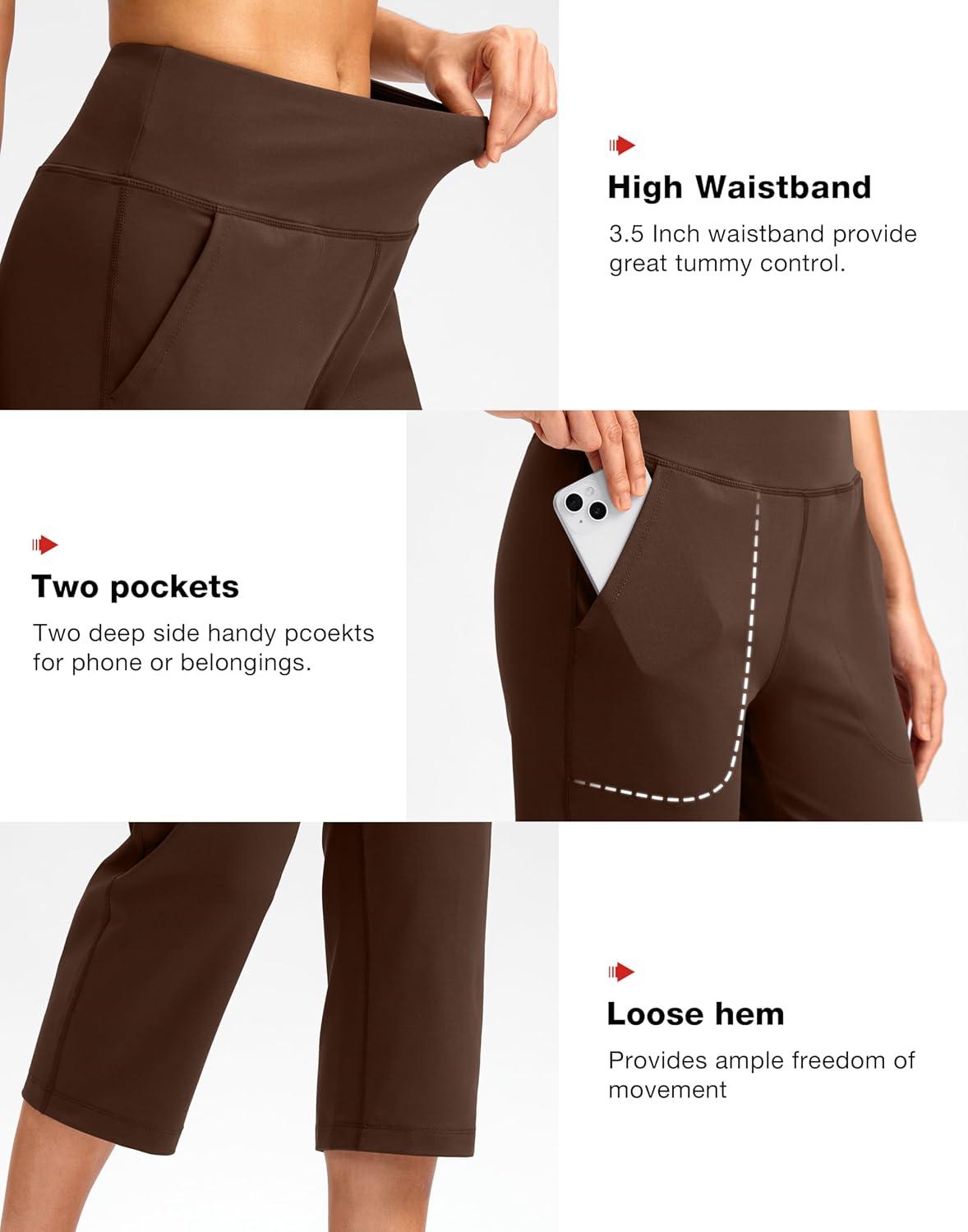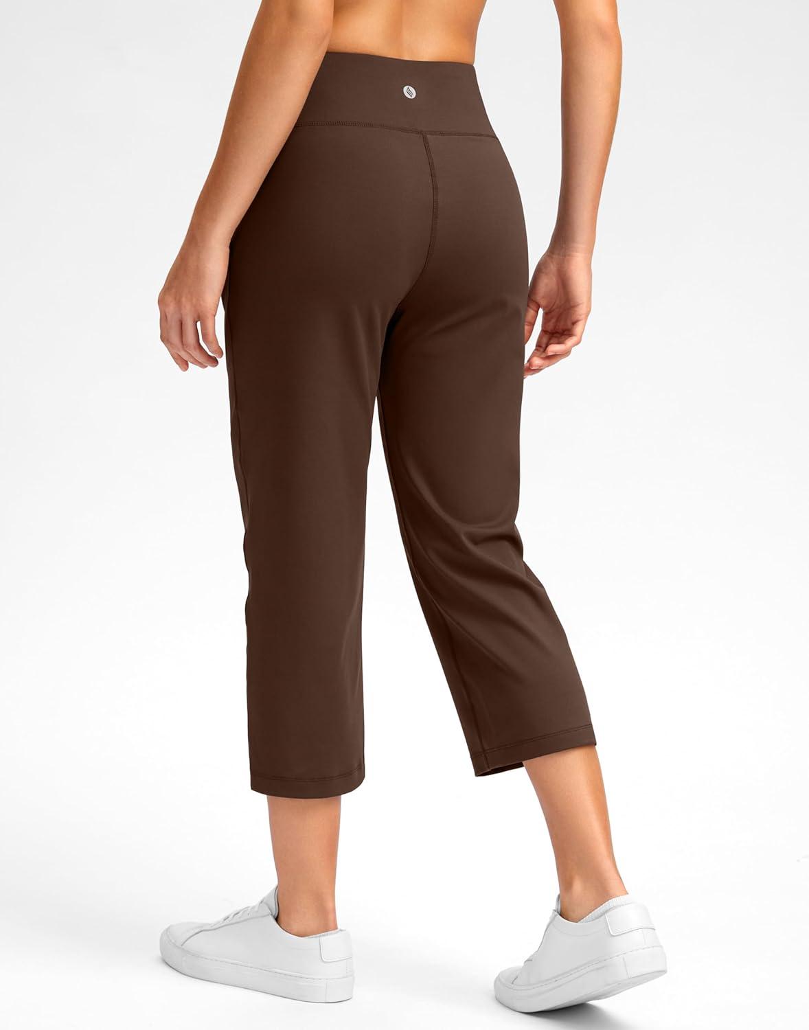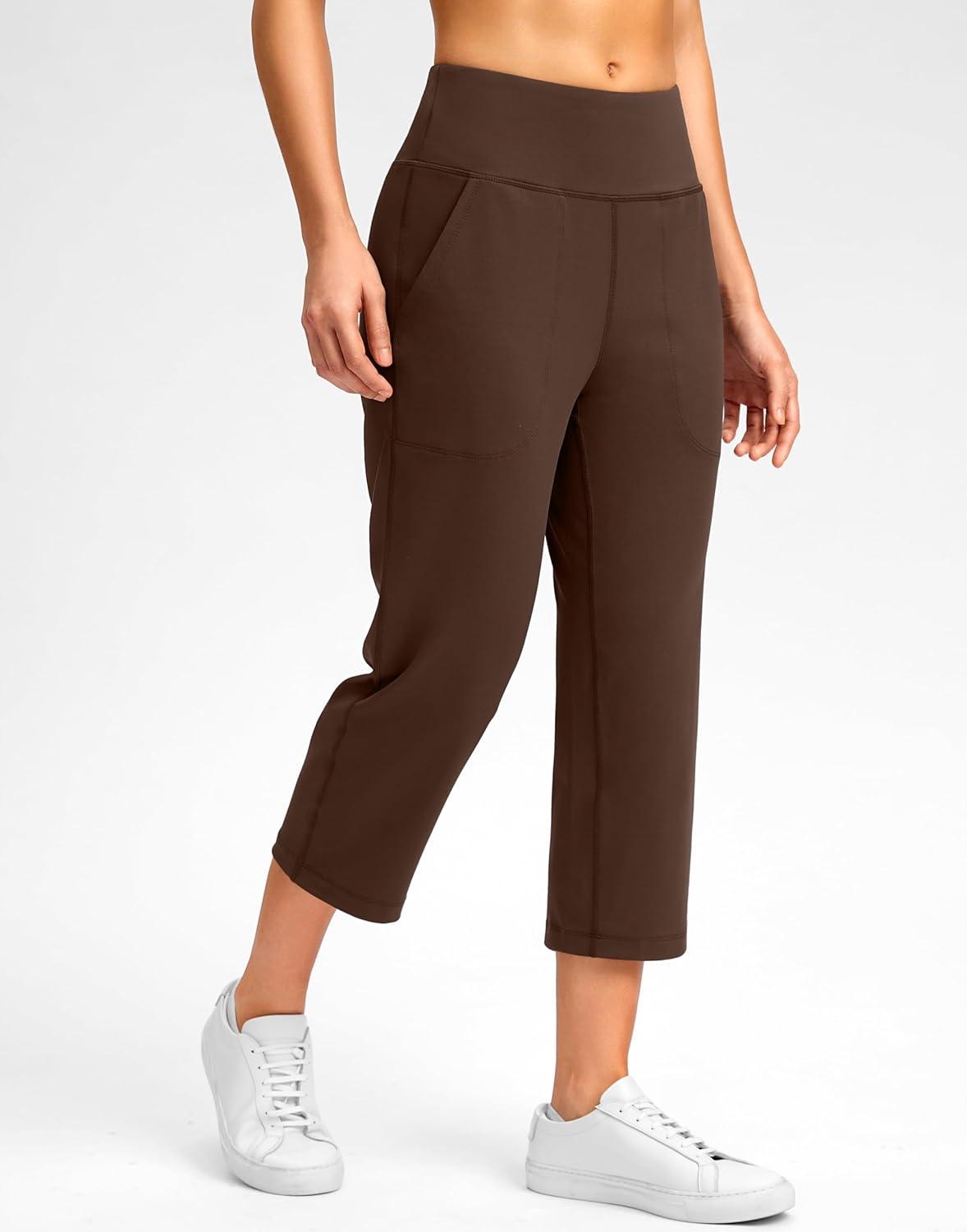 SANTINY Capri Pants for Women High Waisted Workout Yoga Capris Leggings Straight Leg Athletic Cropped Pants with Pockets(Brown)