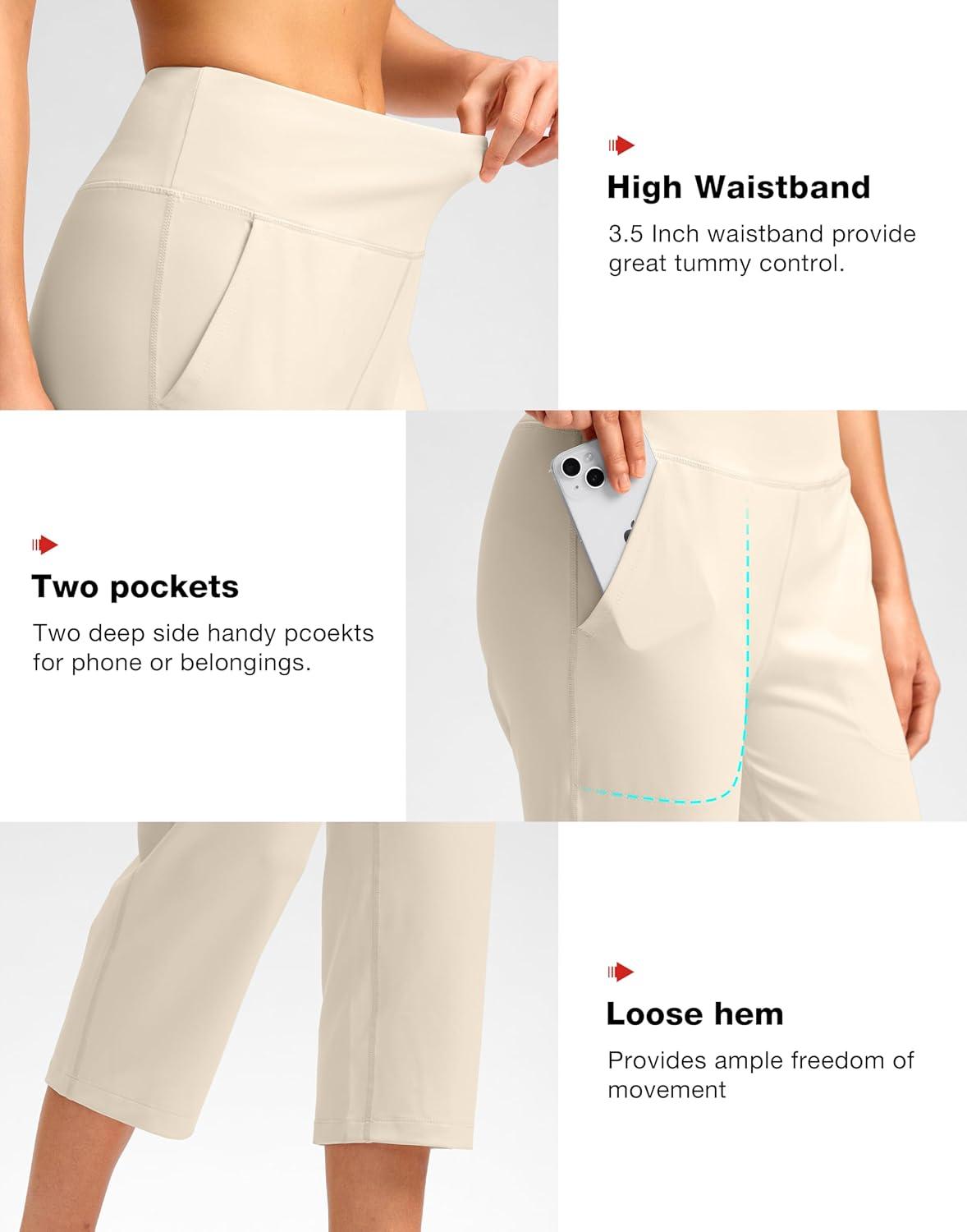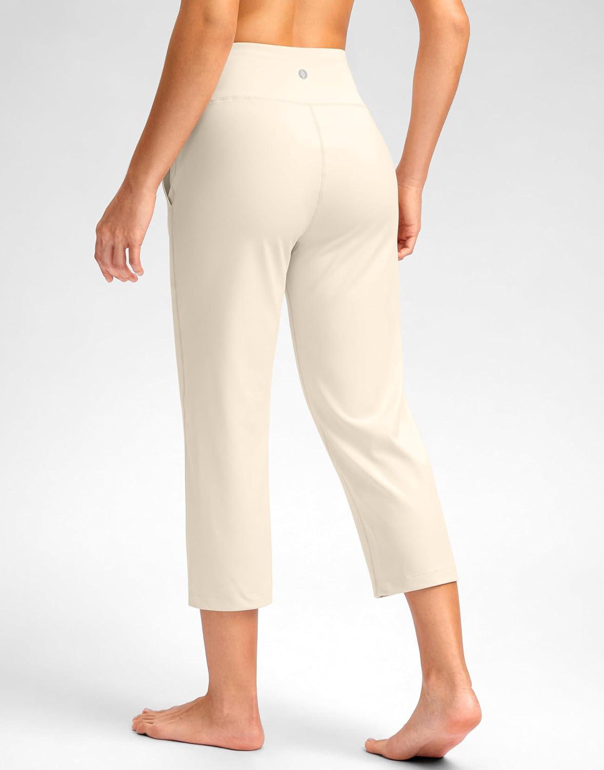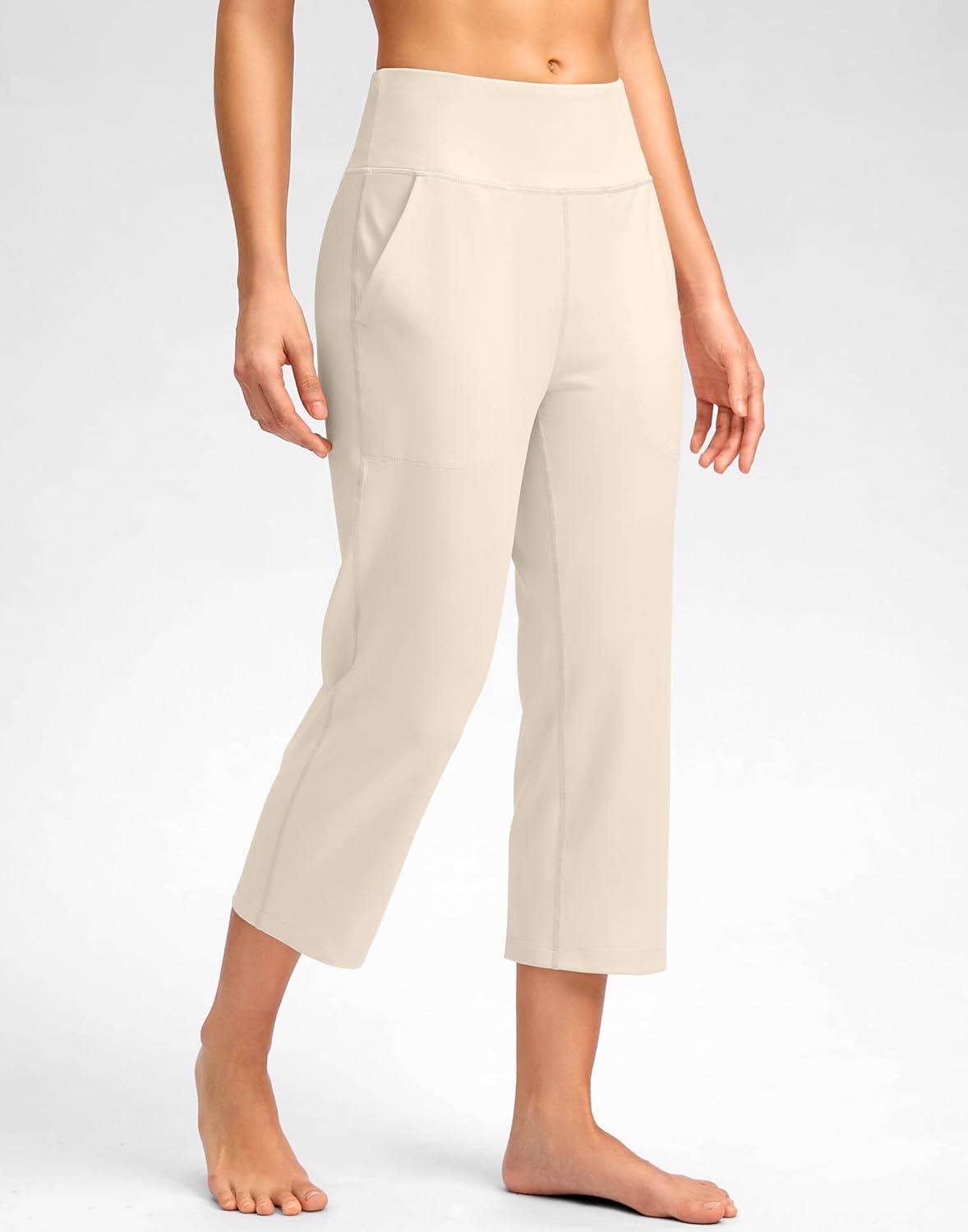 SANTINY Capri Pants for Women High Waisted Workout Yoga Capris Leggings Straight Leg Athletic Cropped Pants with Pockets(Creamy)