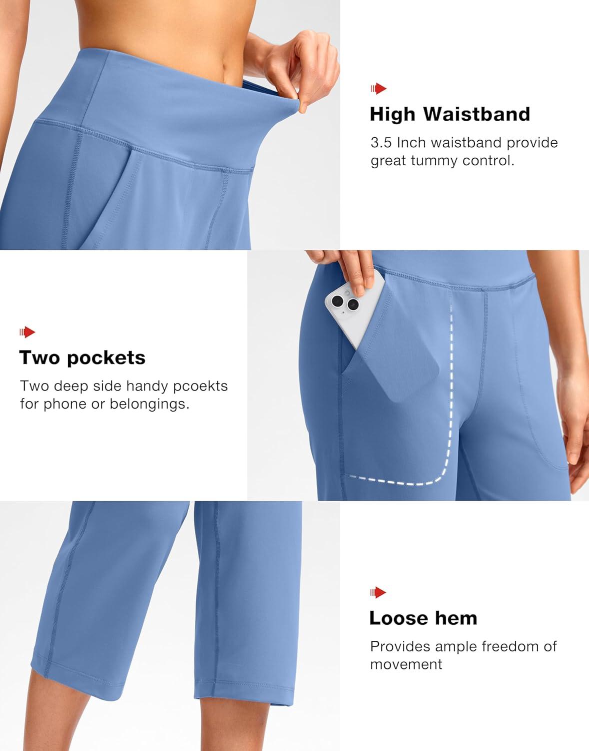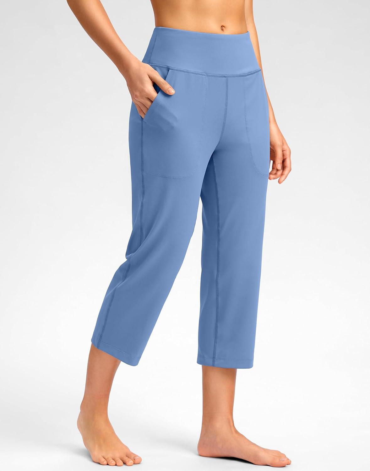 SANTINY Capri Pants for Women High Waisted Workout Yoga Capris Leggings Straight Leg Athletic Cropped Pants with Pockets(Light Blue)