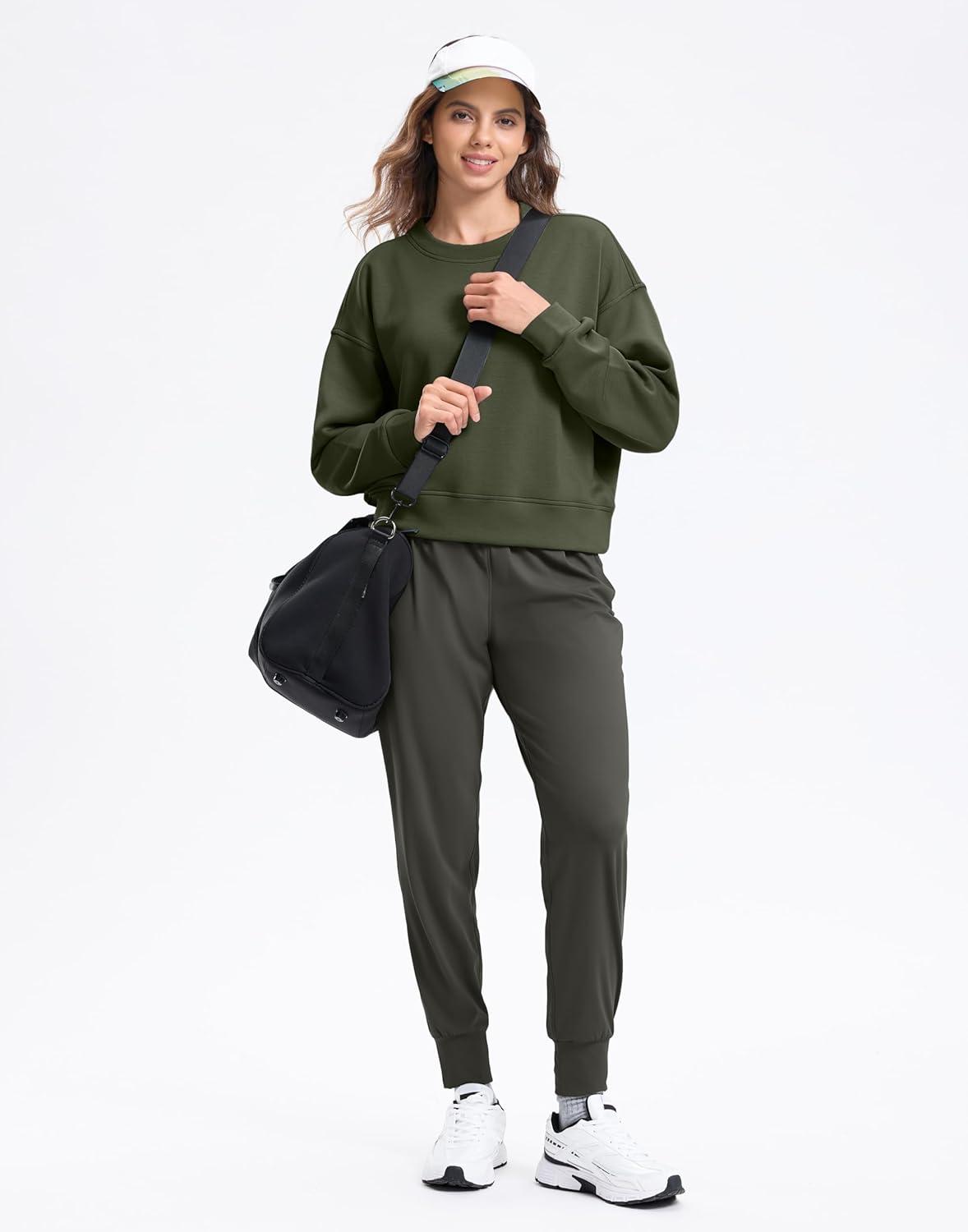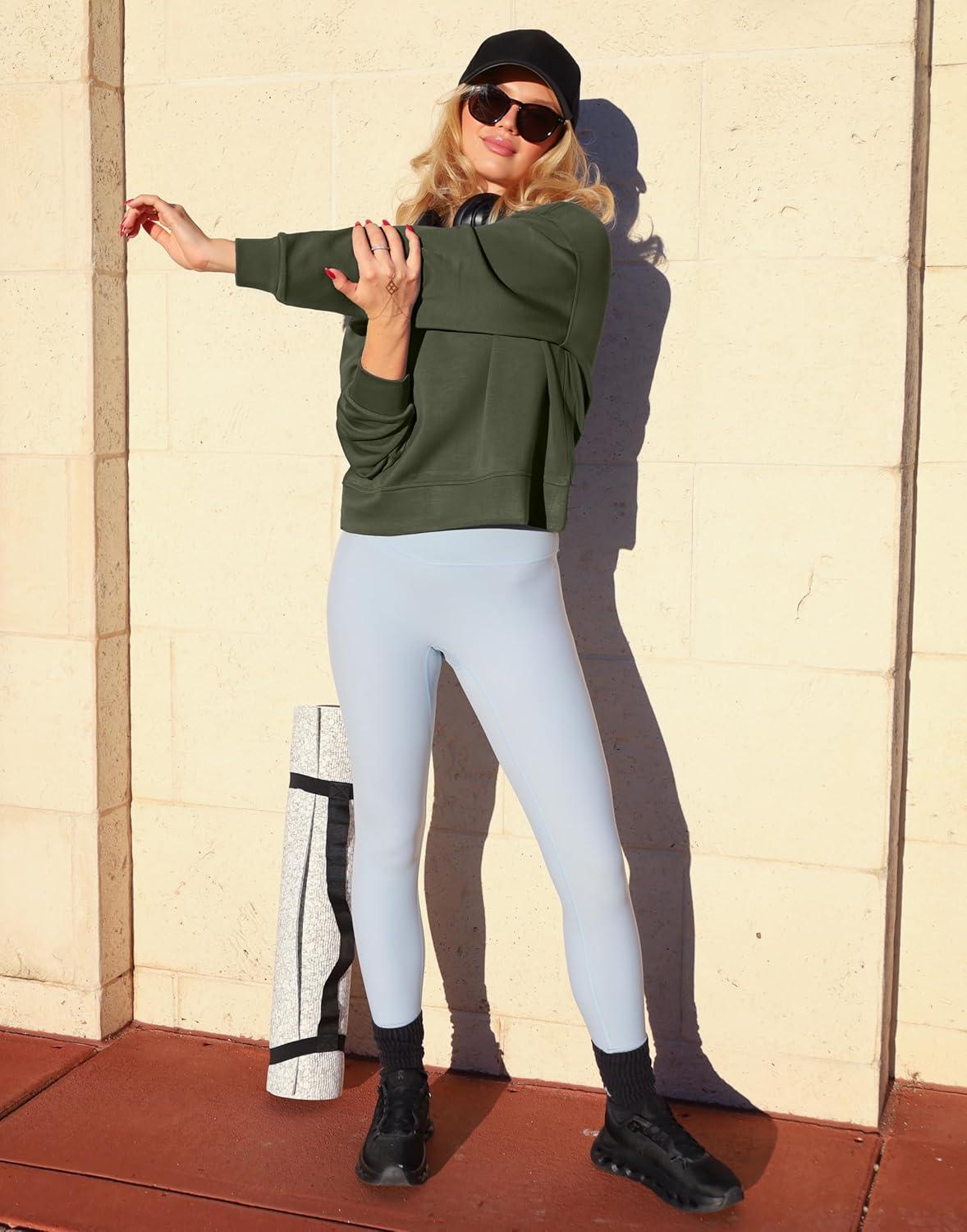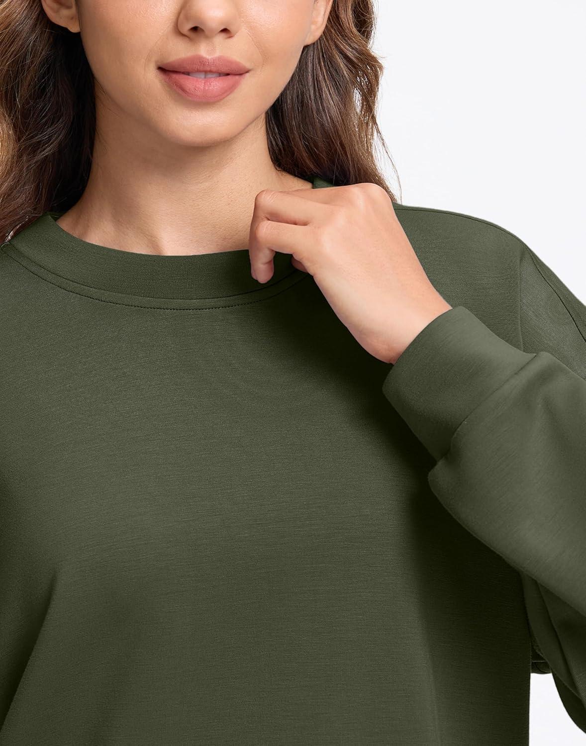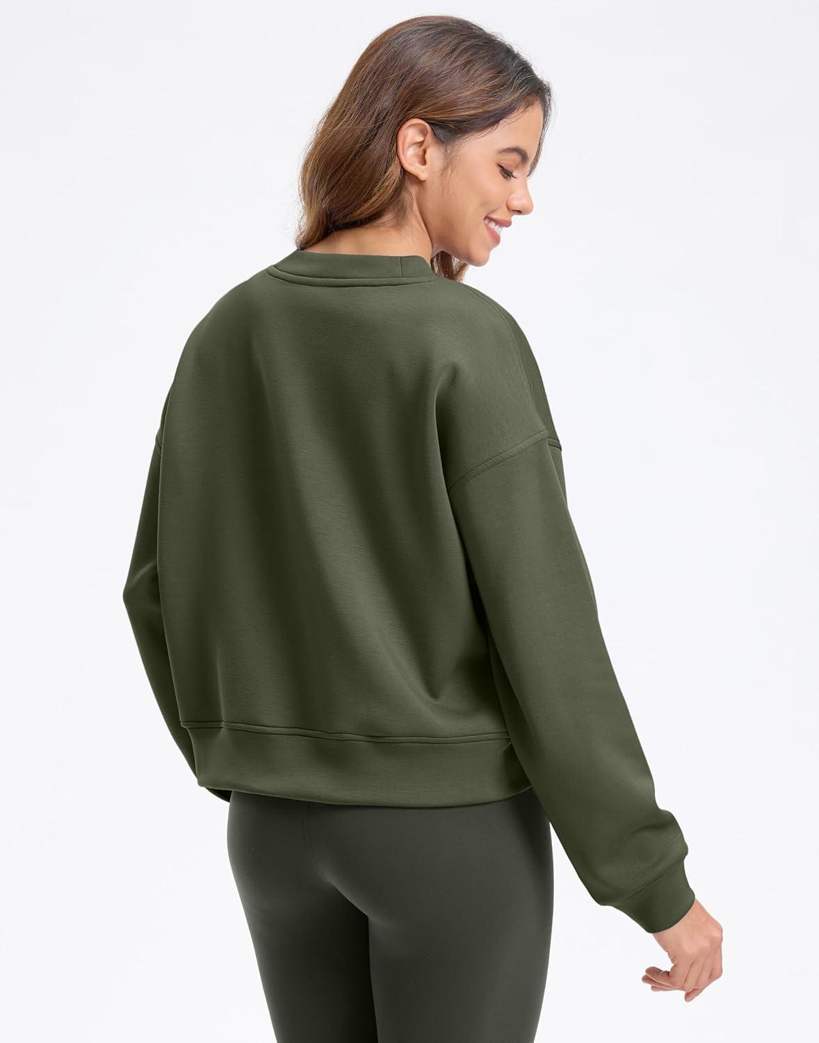 SANTINY Fleece Cropped Sweatshirts for Women Soft Crewneck Sweatshirt Pullover Long Sleeve Workout Crop Tops(Army Green)