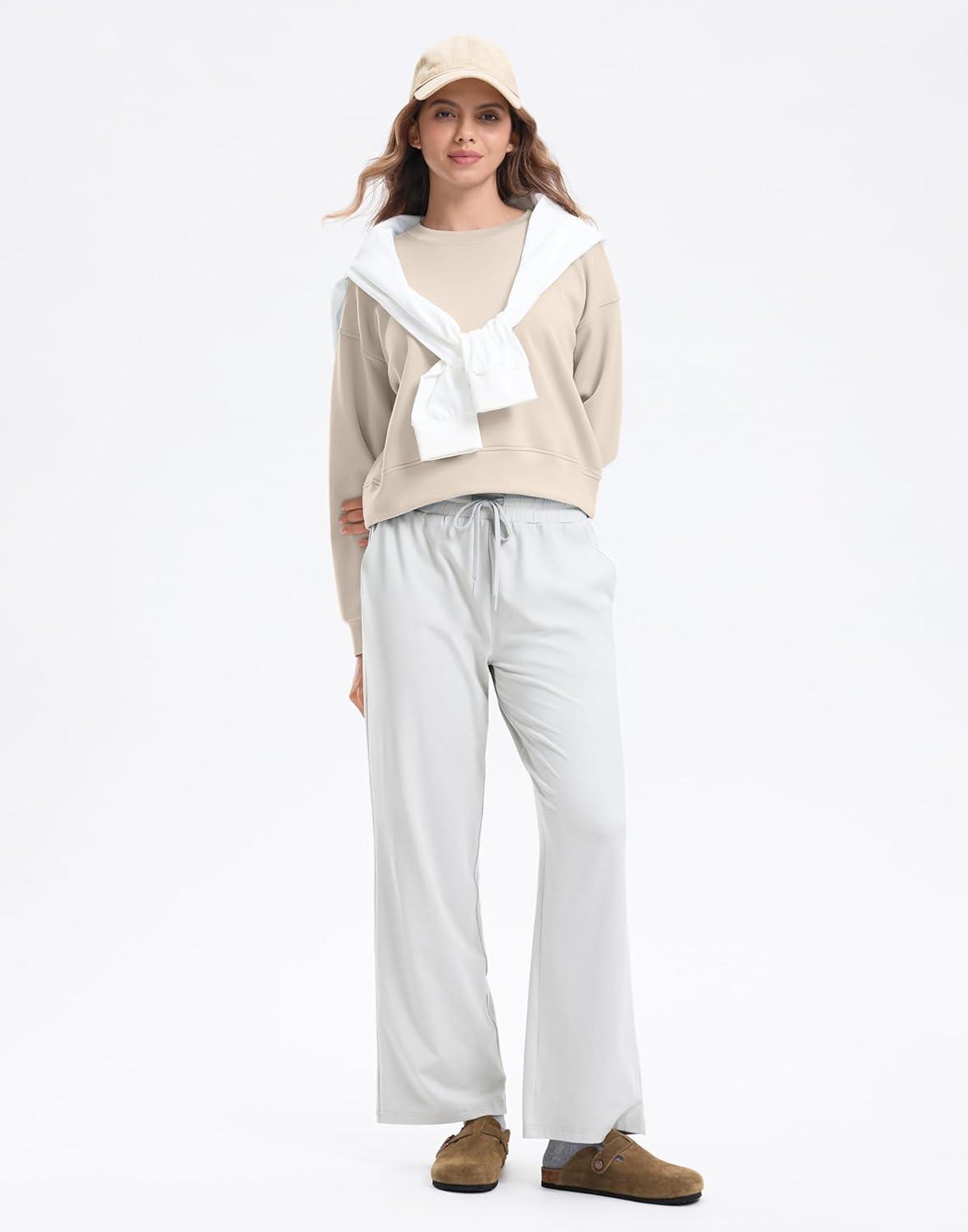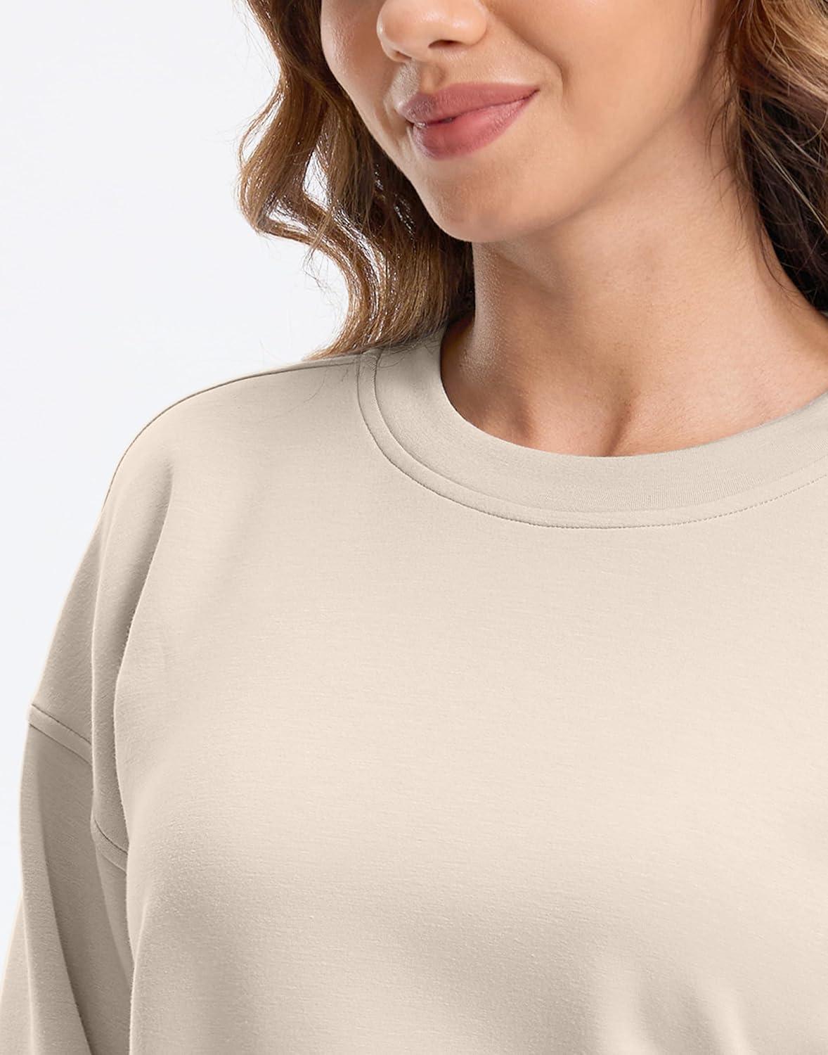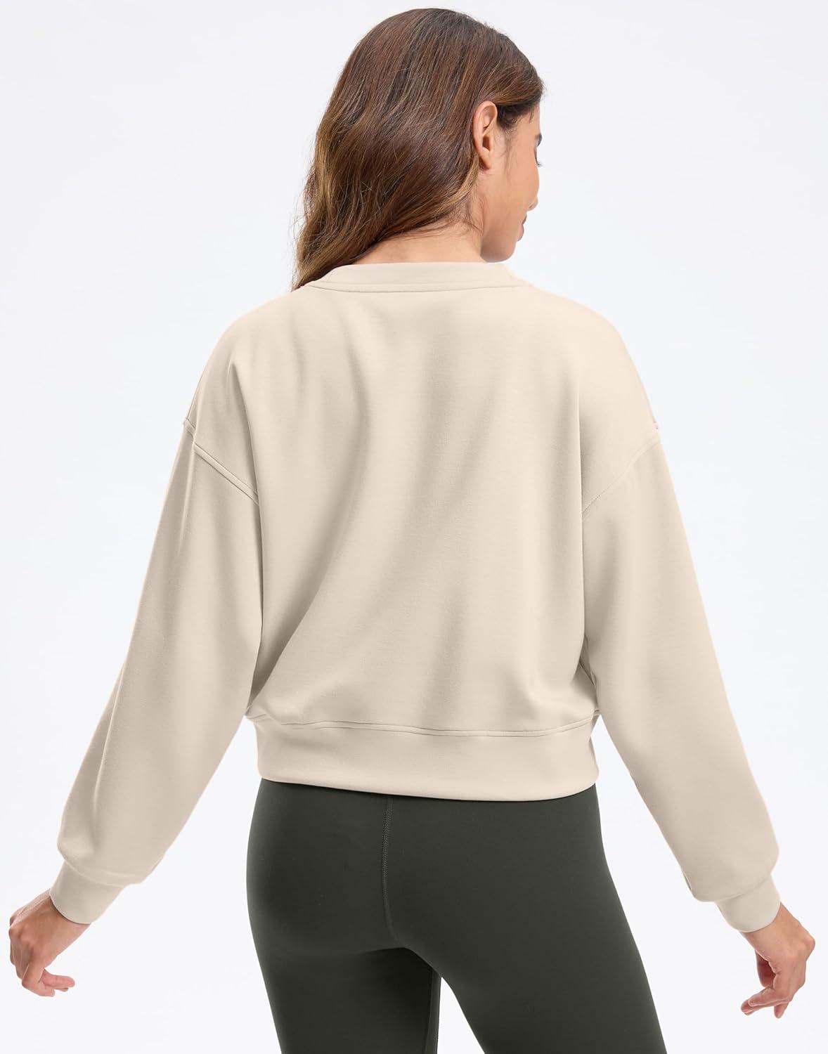 SANTINY Fleece Cropped Sweatshirts for Women Soft Crewneck Sweatshirt Pullover Long Sleeve Workout Crop Tops(Bone White)
